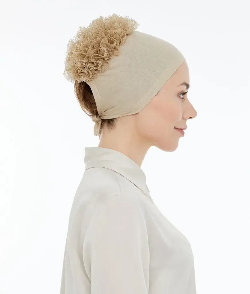 Dikişsiz Kaymaz Güpür Fırfırlı Bone Krem