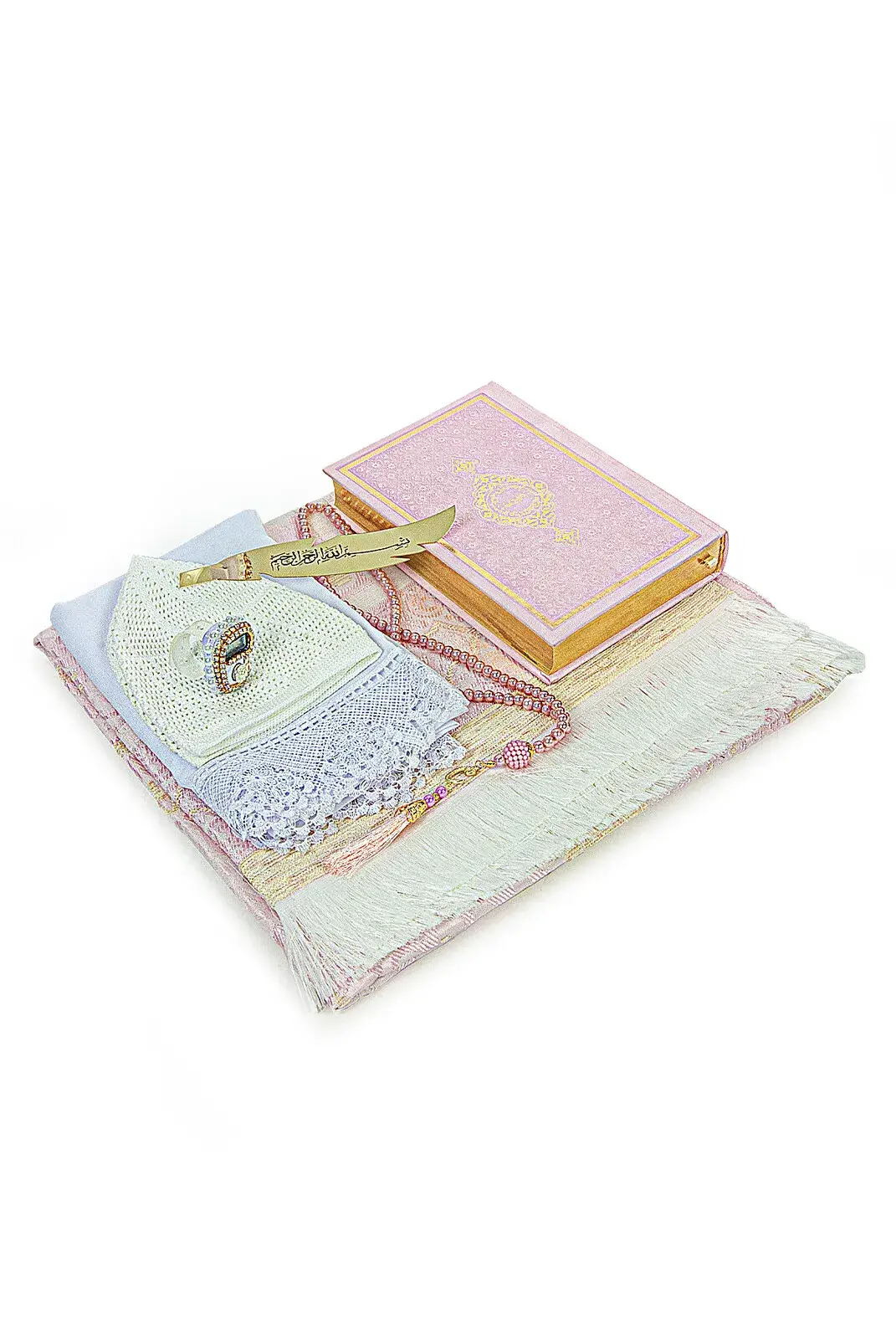 This prayer rug set is designed to suit the dowry bundle. If you want to add elegance to the contents of the bundle in your traditional dowry preparations and add an option that is compatible with other items in your dowry, this set is just for you. At the same time, this set can also be considered as a gift on special occasions and can add meaning to the happiness of your loved ones.