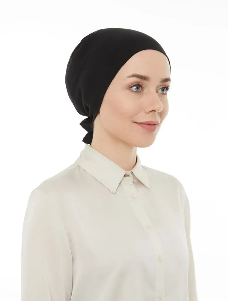 Dikişli Düz Penye Bağlamalı Tesettür Bone Siyah