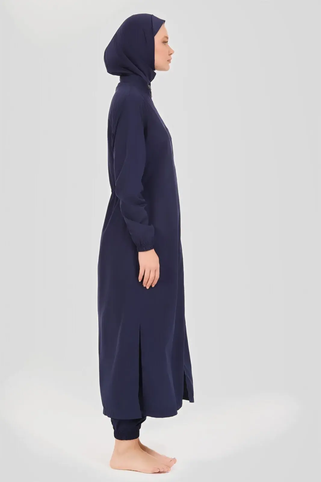 Üst, Pantolon, Eşarp, Bone, Tek parça iç çamaşırı olmak üzere 5 parçadan oluşmaktadır. Hızlı kuruma, kolay yüzme olanağı sağlar.