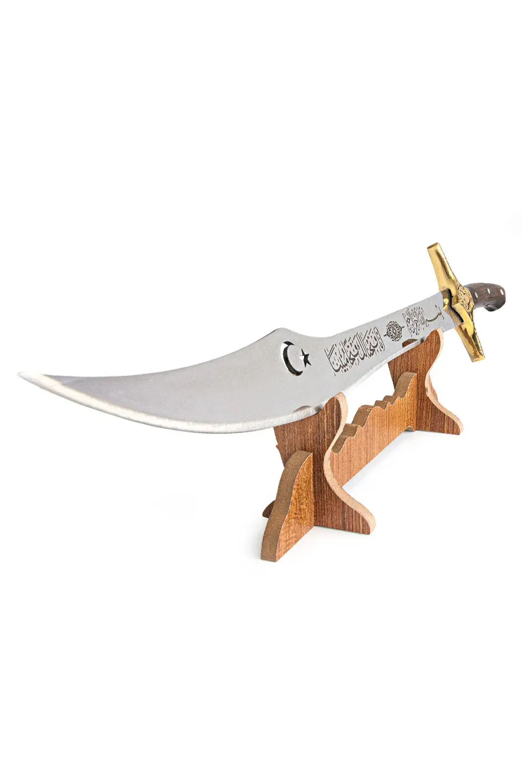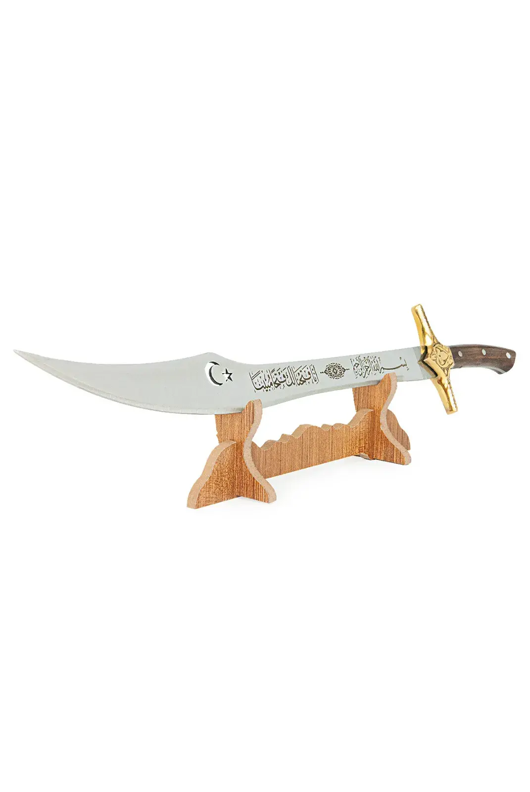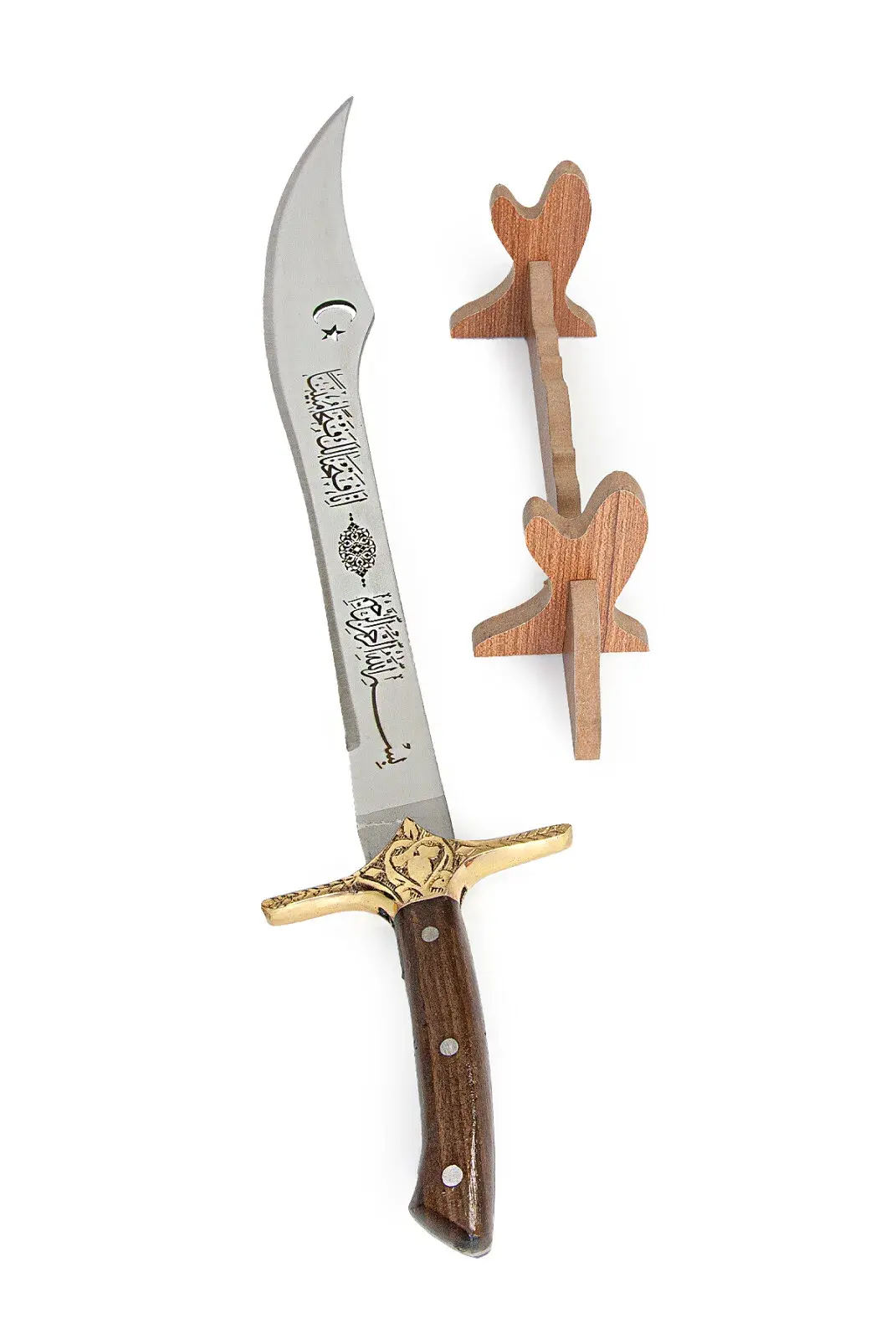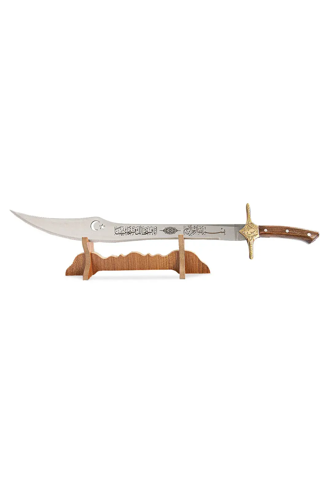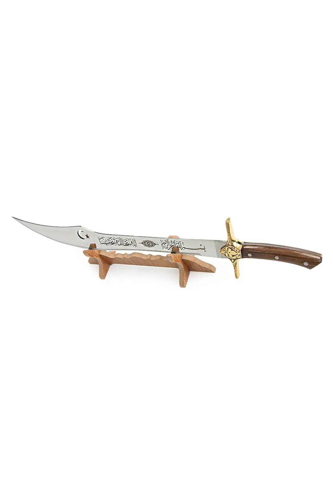 - İşlemeli Detaylar: Kılıç üzerinde Arapça yazı, hilal ve süslemeler yer alır, manevi bir anlam ve görsellik katar.