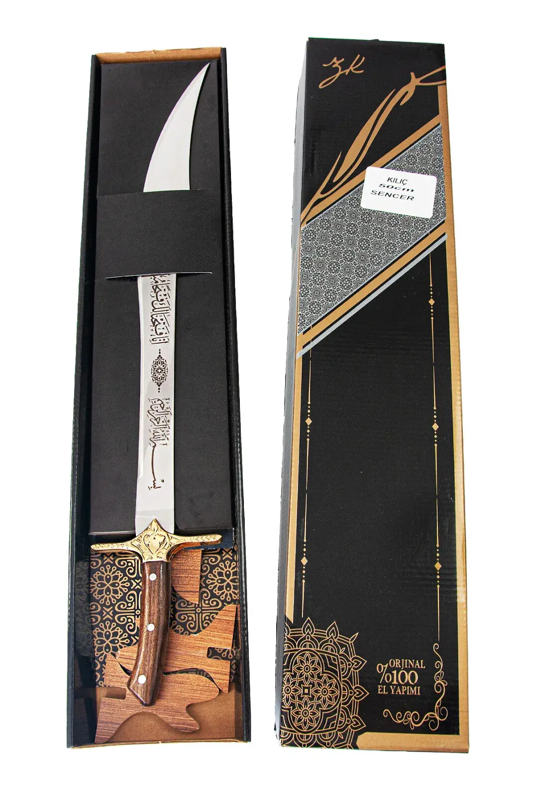 Geleneksel Sencer Kılıcı Tasarımı: Bu dekoratif Sencer kılıcı, yalmanlı yapısı ve zarif işlemeleri ile tarihi bir dokunuş sunar. Kılıcın yalmanlı kısmı, uca doğru genişleyen keskin yapısıyla estetik bir görünüm sağlar ve geleneksel Türk kılıçlarının özgün karakterini yansıtır.