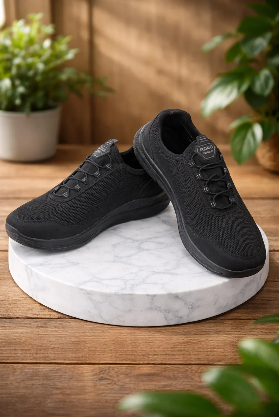 Erkek Bağcıksız Hava Alabilen Spor Ayakkabı - Hafif Taban Günlük Yürüyüş Ayakkabısı - Siyah