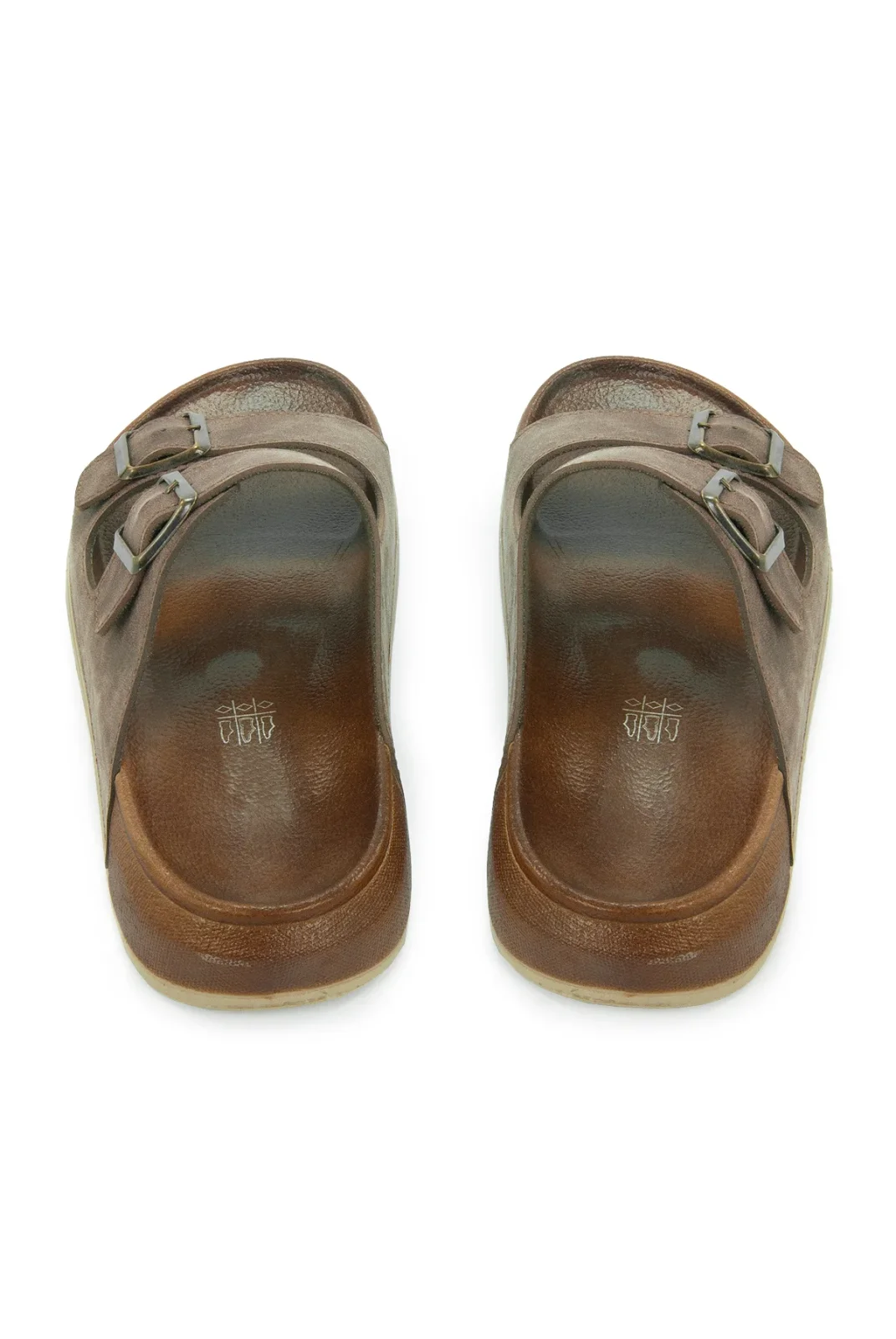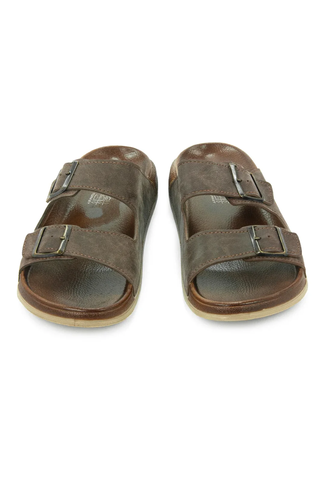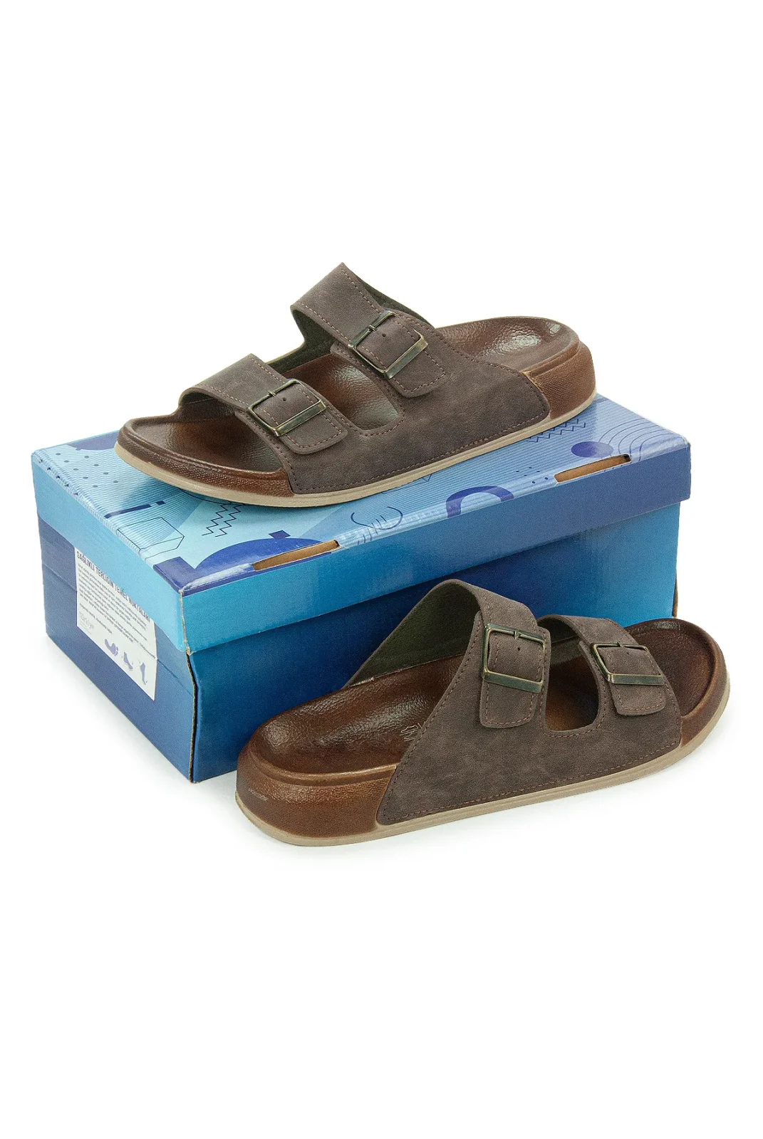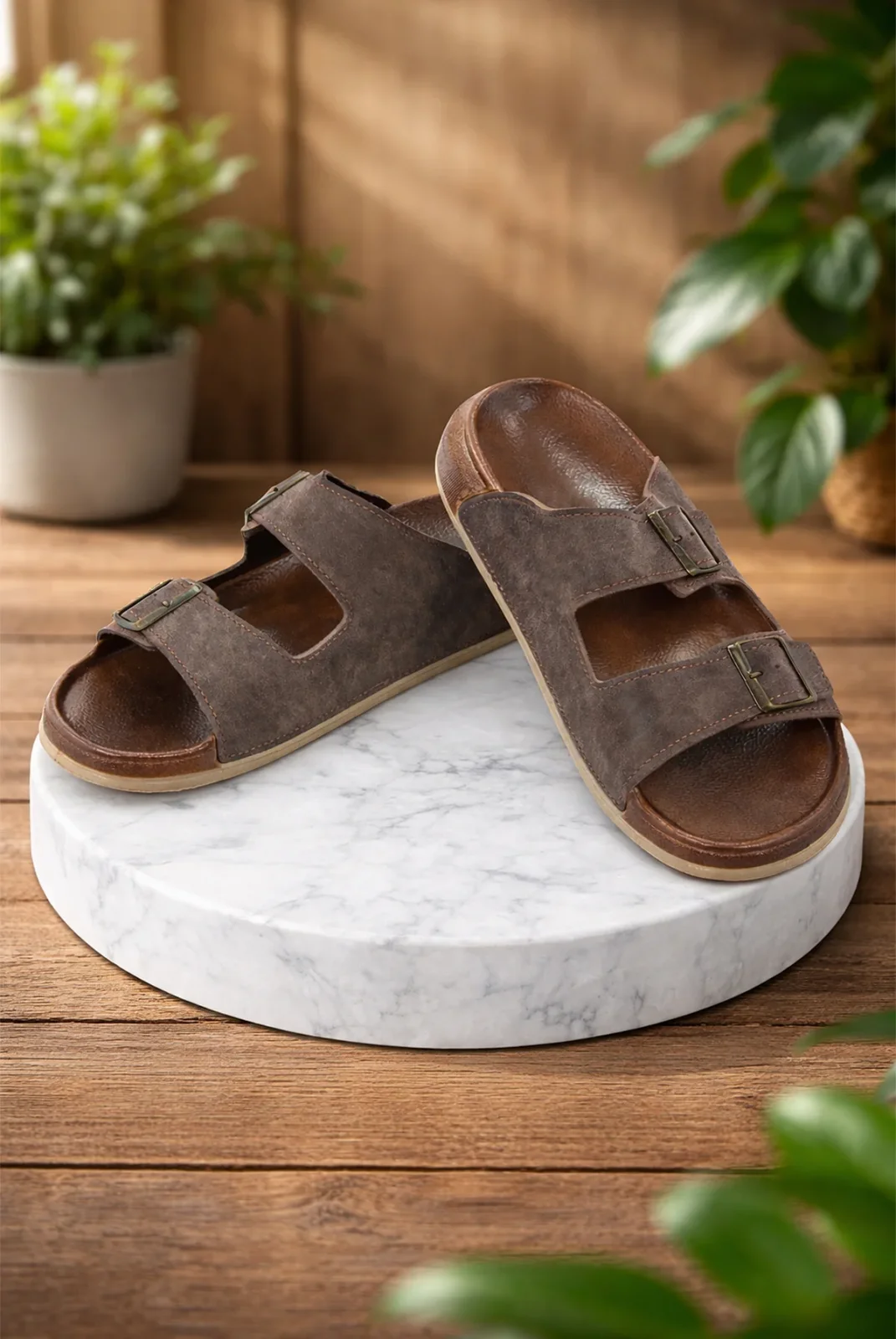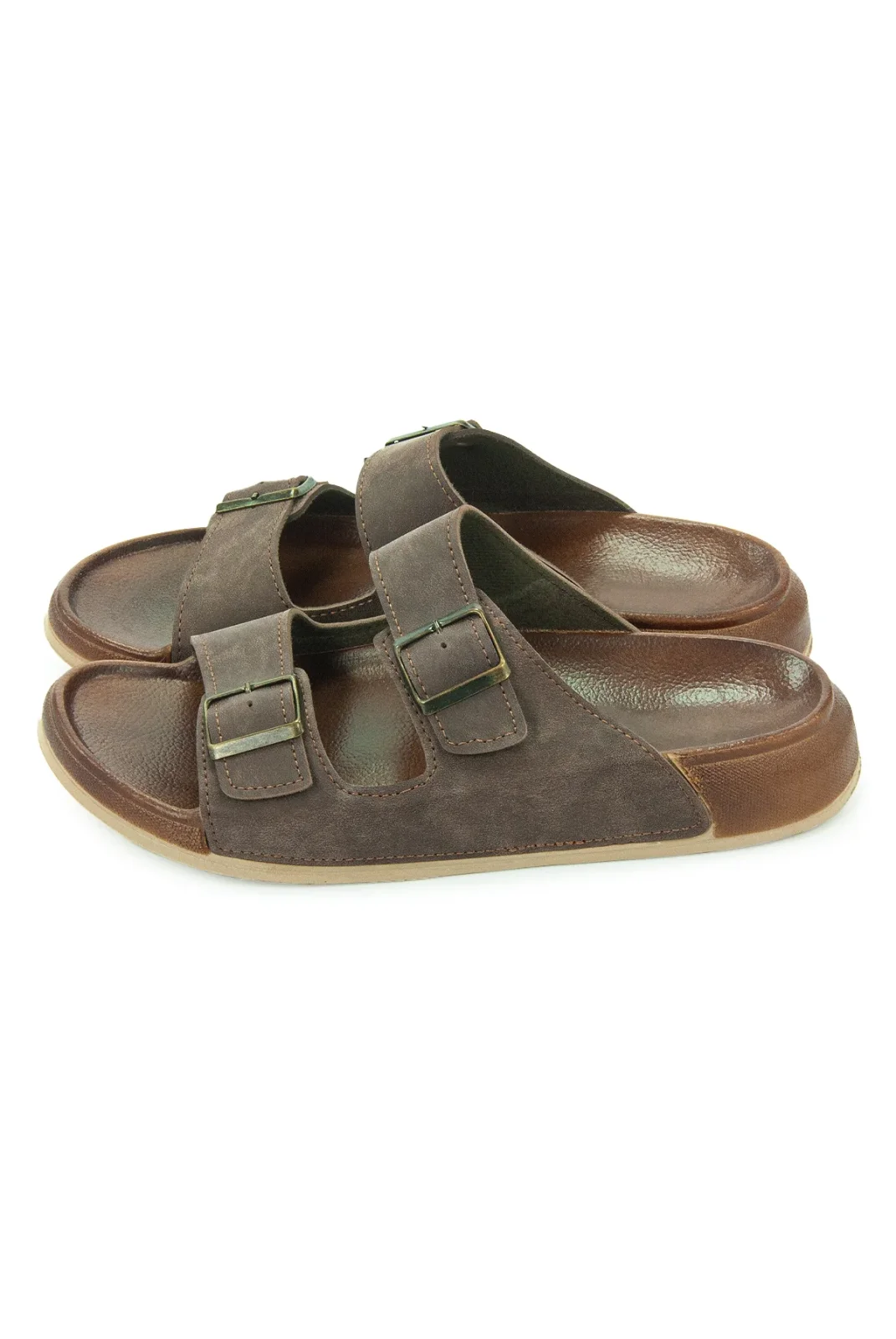 Erkek Çift Tokalı Ortopedik Hac Umre Terliği - Ergonomik Rahat Taban Günlük Terlik - Kahverengi
