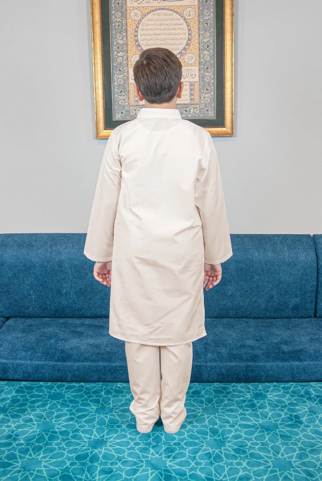 Çocuklar için özel olarak tasarlanmış bu takım, günlük kullanımın yanı sıra Hac ve Umre ziyaretlerinde rahatlıkla tercih edilebilir. Sade ve şık tasarımıyla dikkat çeken takım, hafif ve nefes alabilen kumaşı sayesinde çocukların gün boyu konforlu ve özgürce hareket etmesini sağlar.