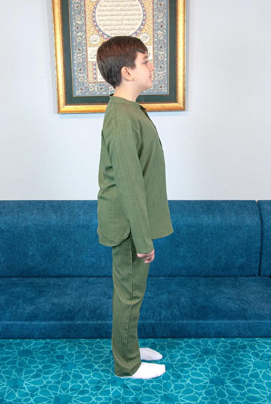 Erkek Çocuk Hac Umre Yarım Patlı Gömlek Pantolon Takım - Yeşil (Krk)