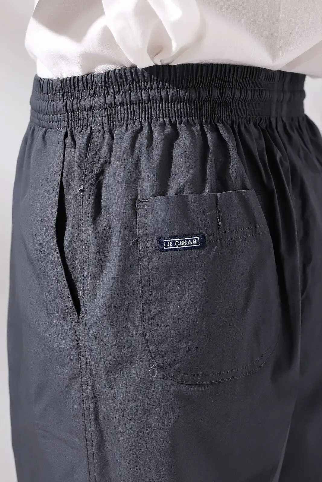 Erkek Füme Çınar Rahat Kesim Beli Lastikli Hac ve Umre Keten Şalvar Pantolon