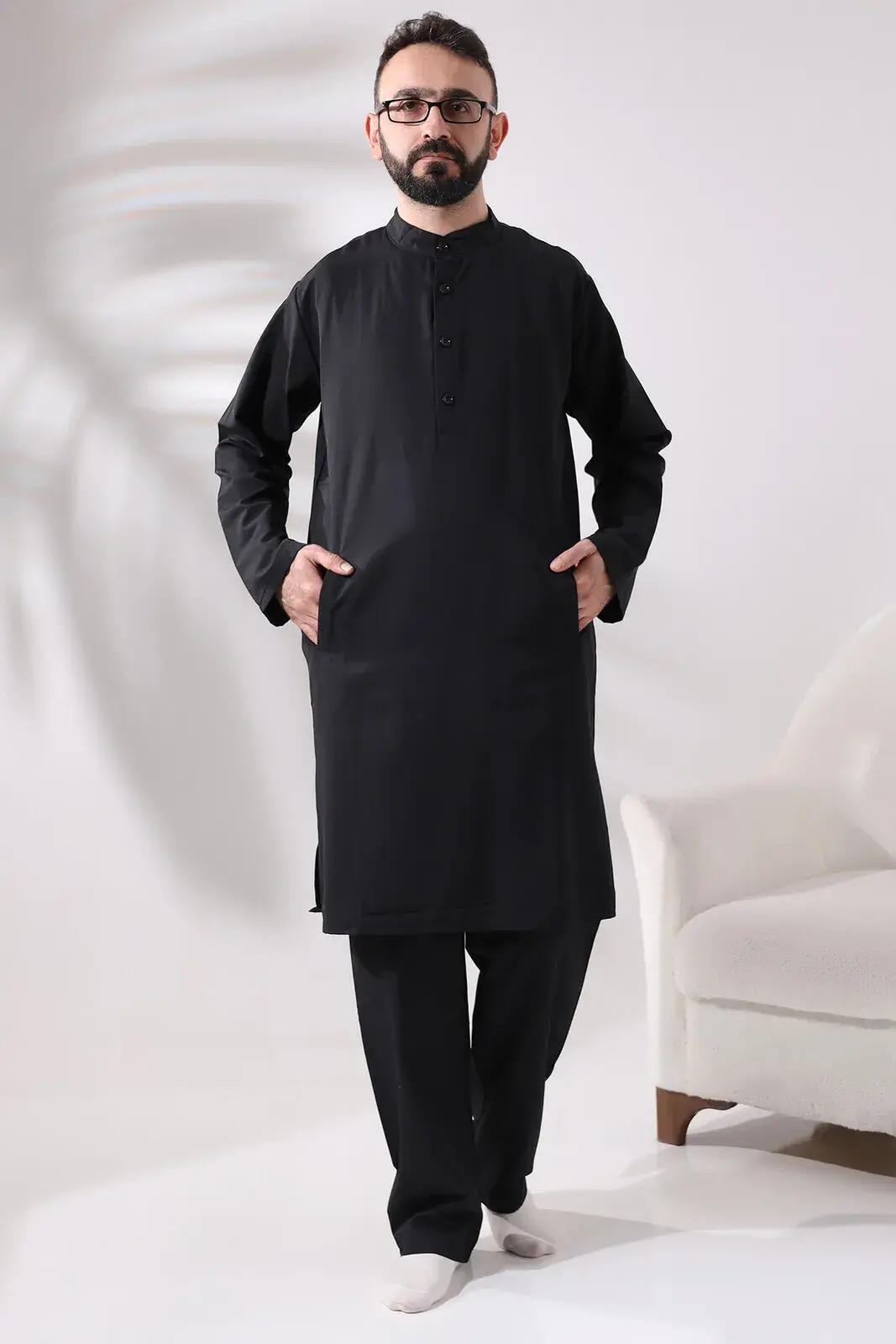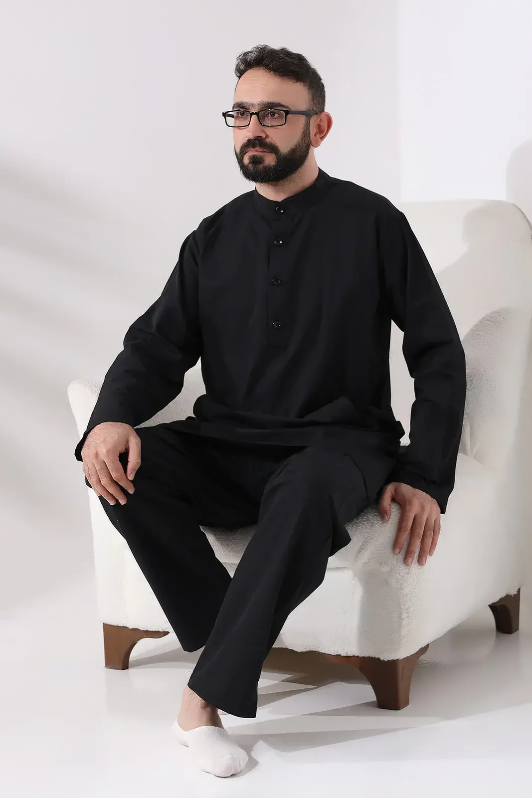 Erkek Hac ve Umre Kıyafeti İkili Alt Üst Afgan Takım Siyah