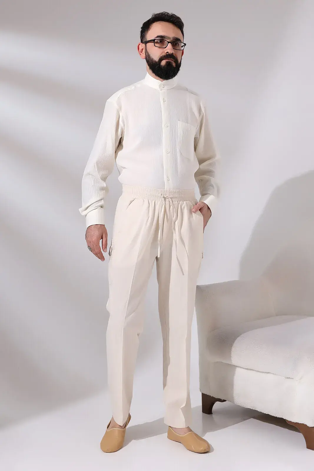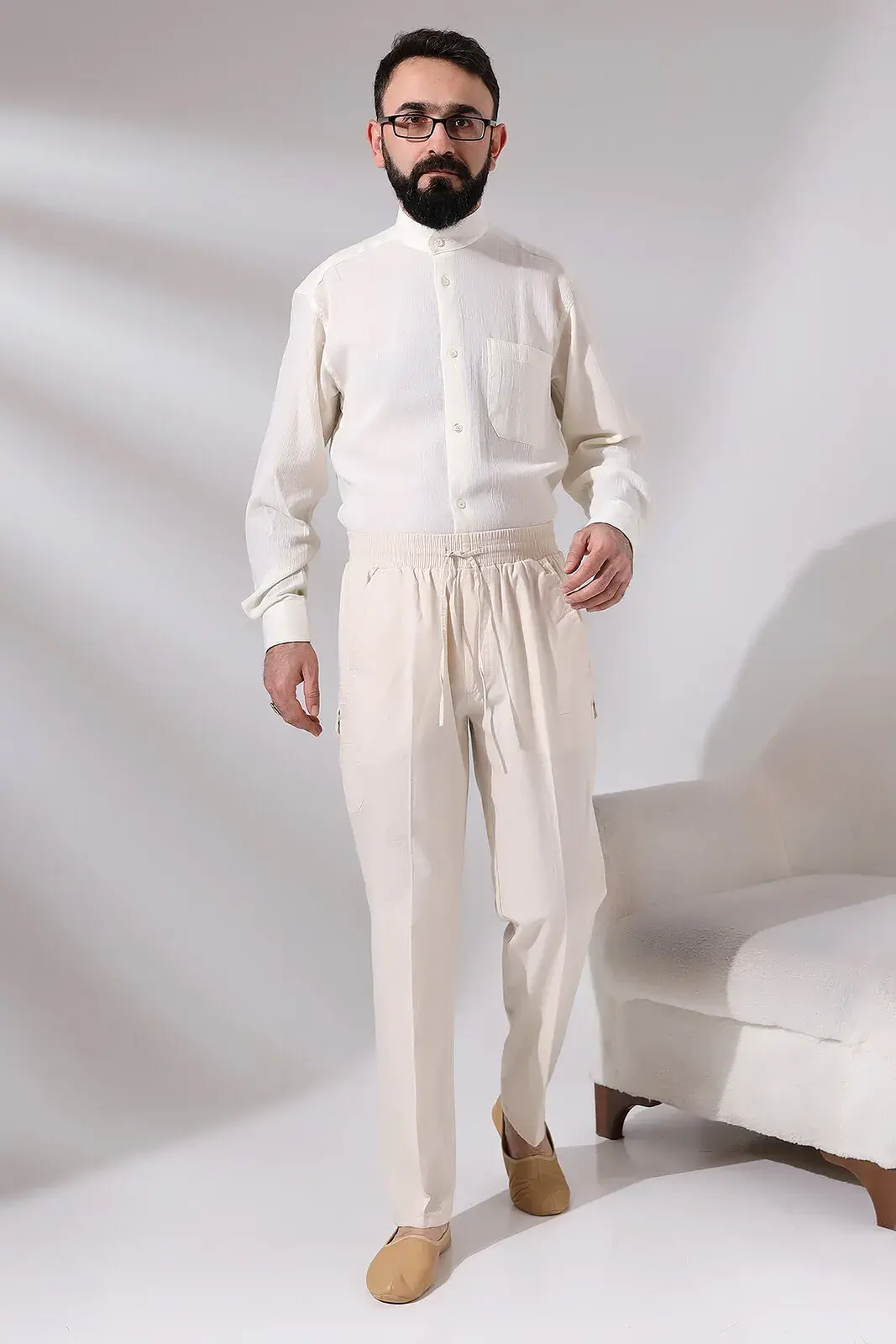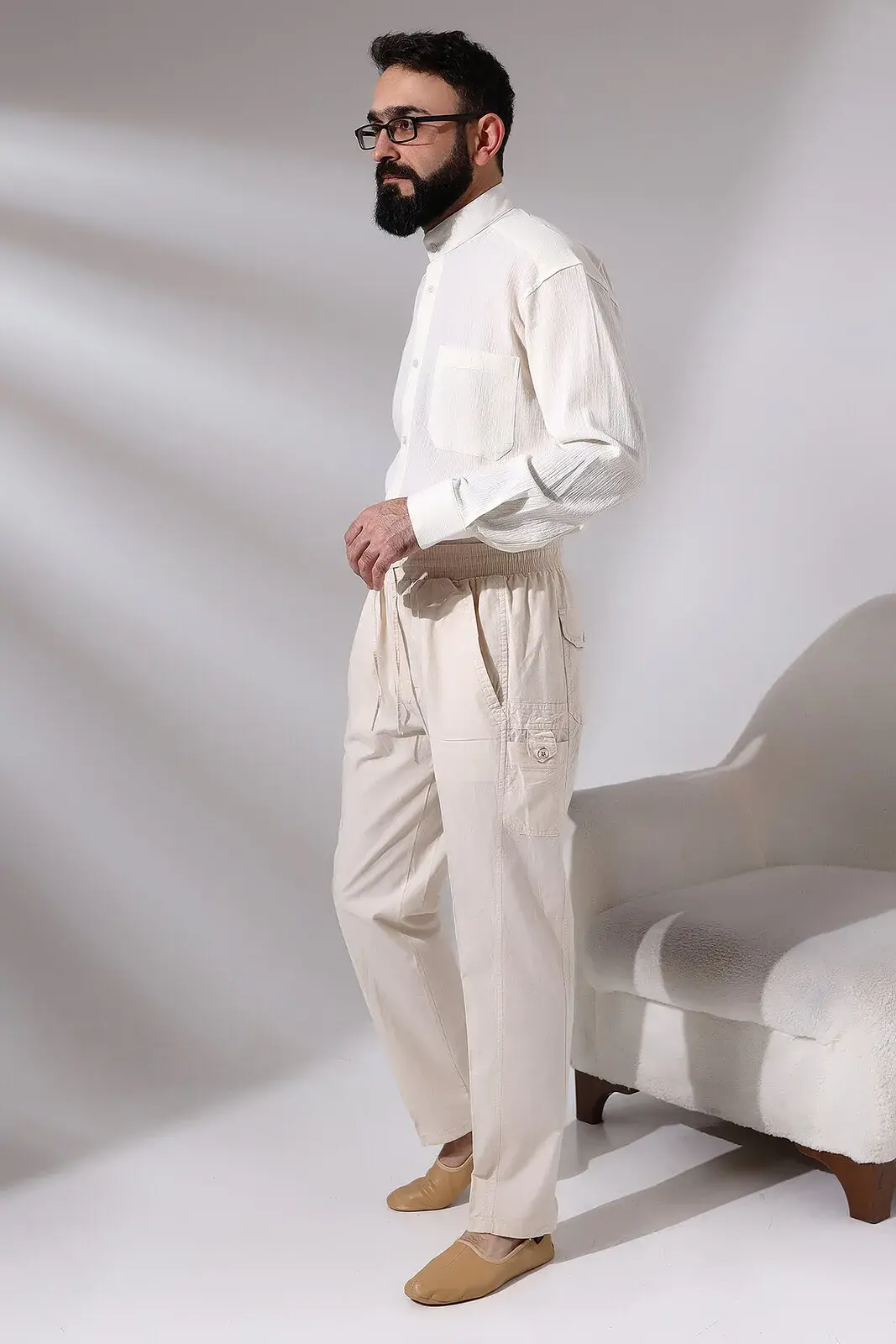 Erkek Krem Çınar Beach Yandan Cepli Rahat Kesim Beli Lastikli Kargo Şalvar Pantolon