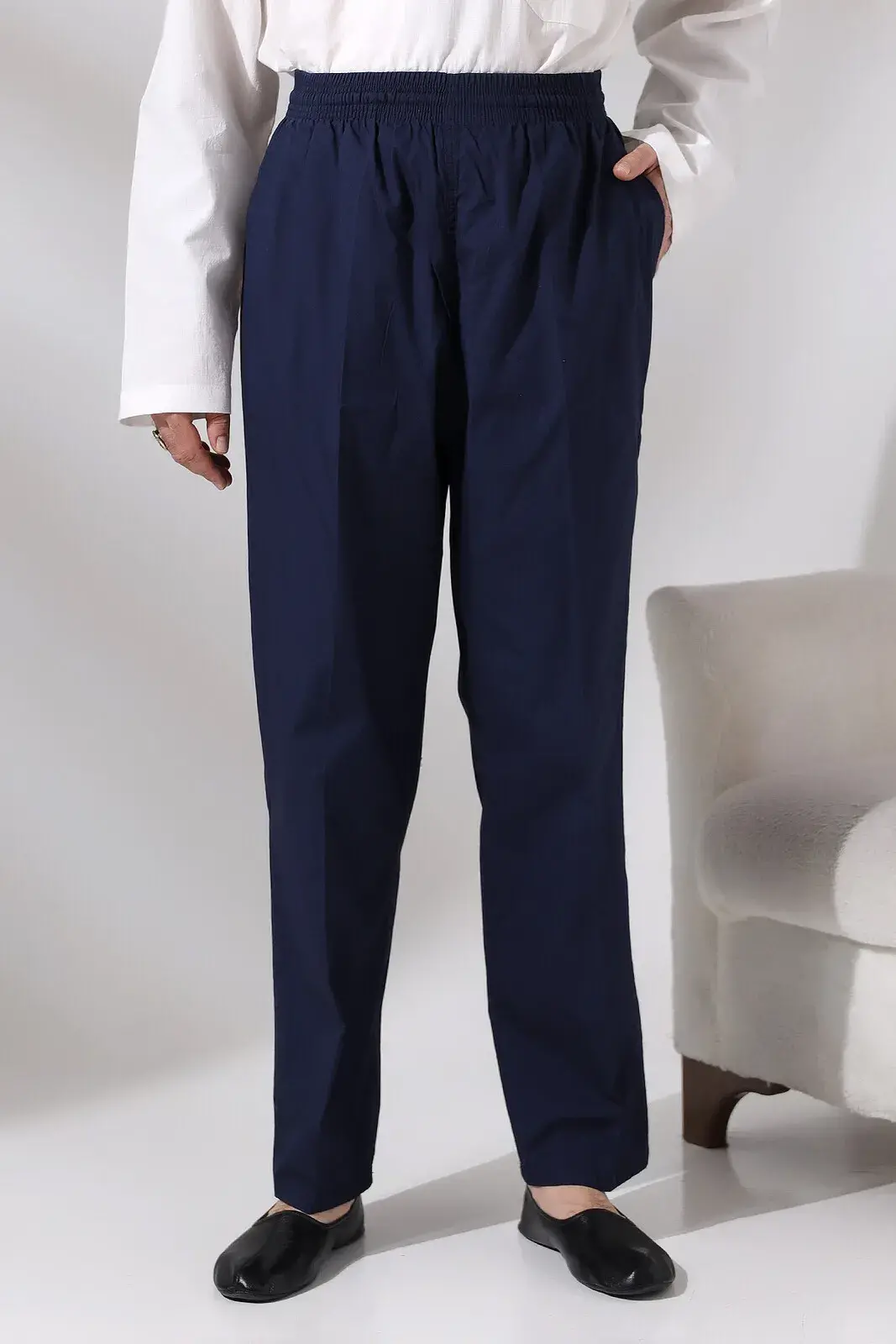 Erkek Lacivert Çınar Rahat Kesim Beli Lastikli Hac ve Umre Keten Şalvar Pantolon