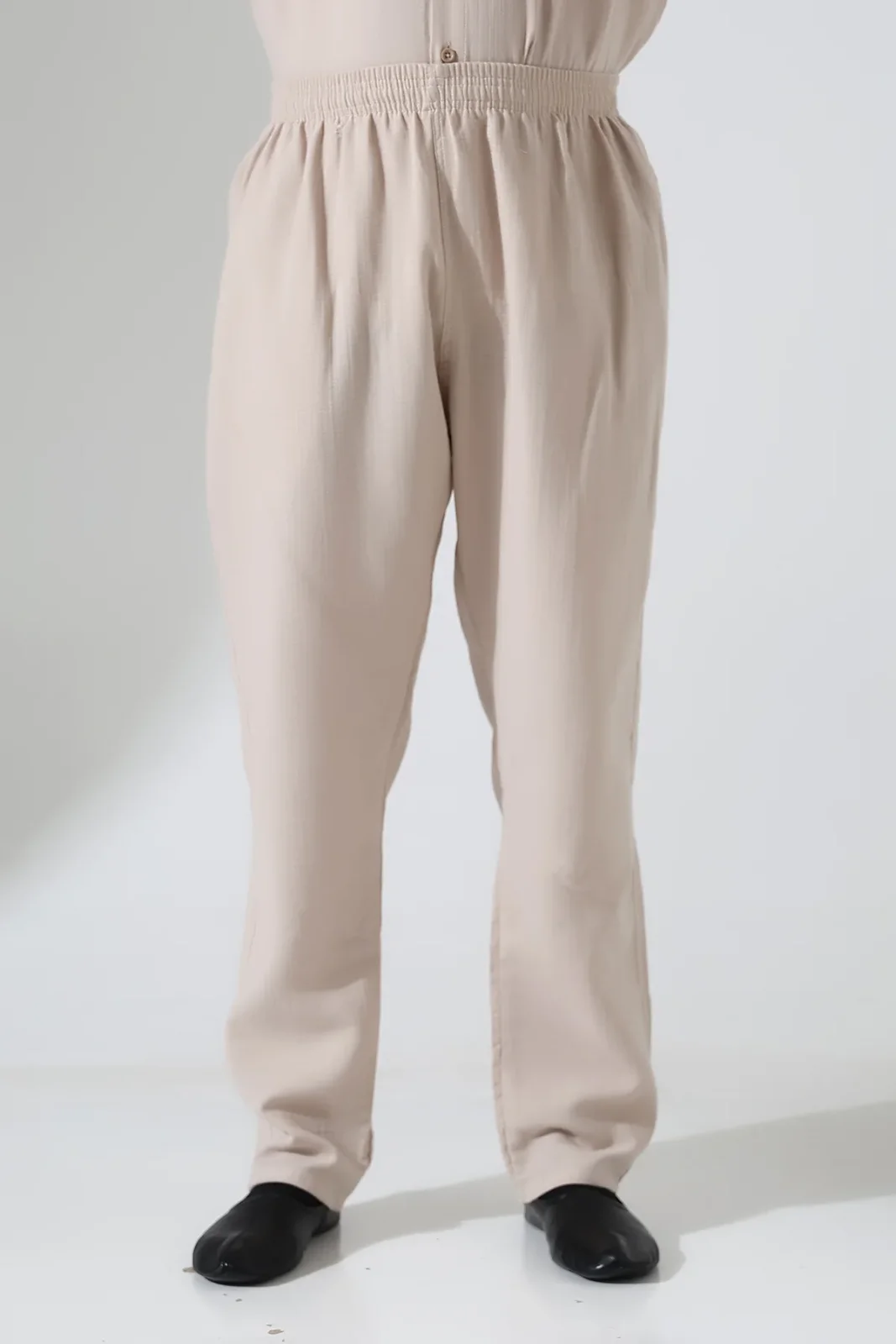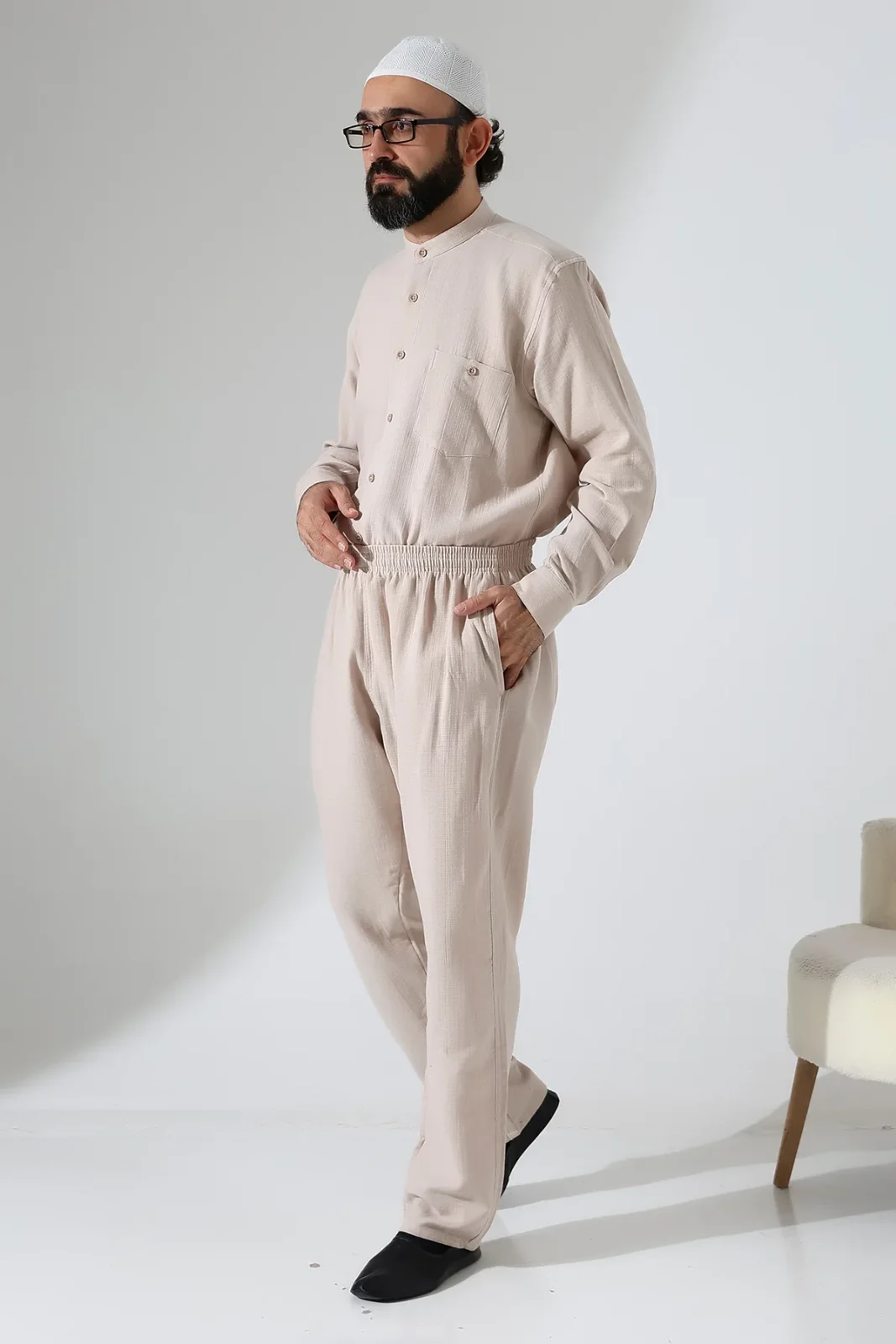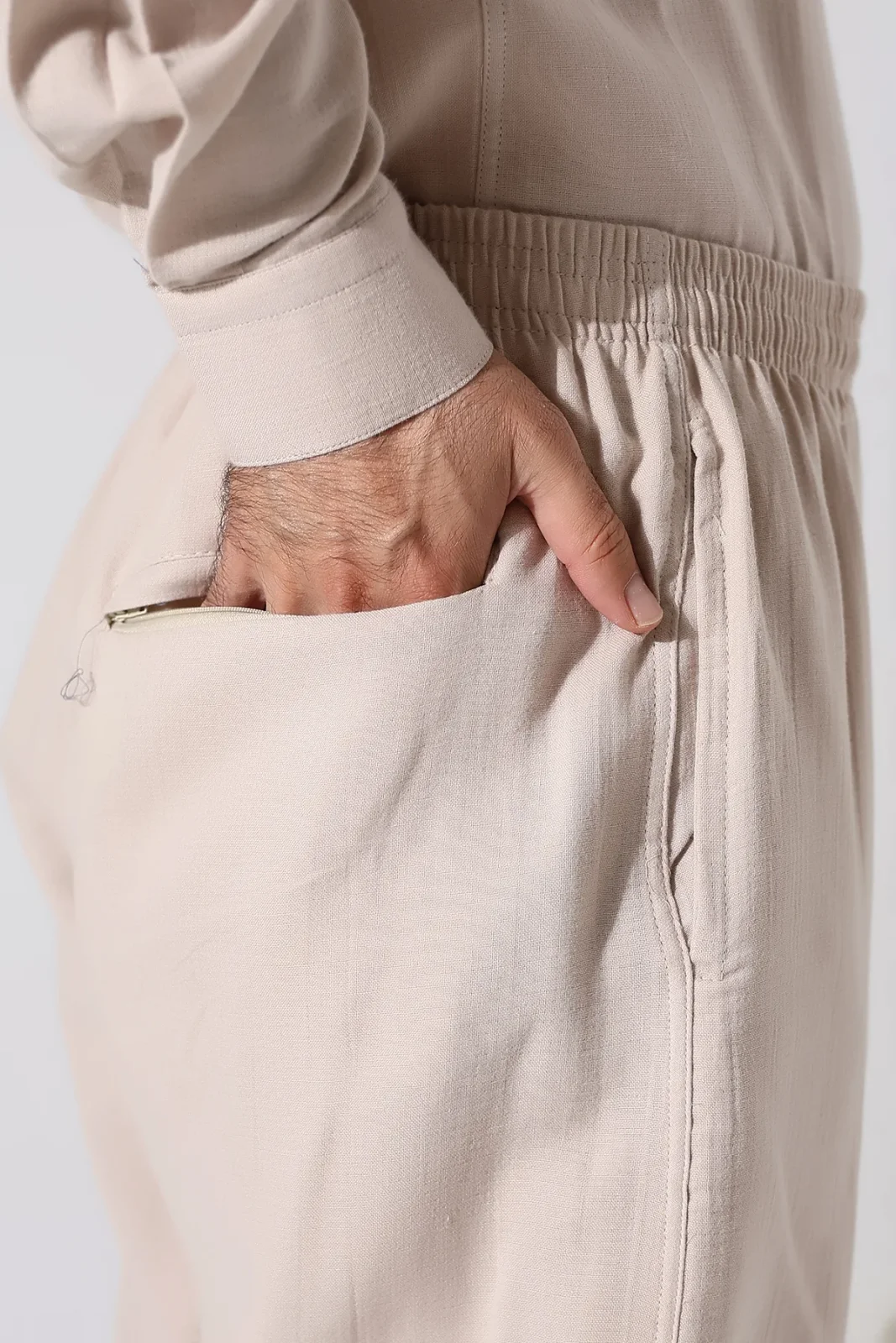 Erkek Lastikli Bel Cepli Hac Umre Müslin Pantolon - Bej (ANS)