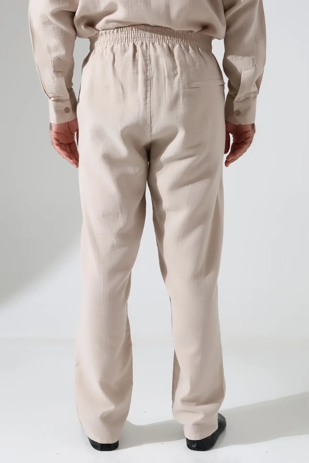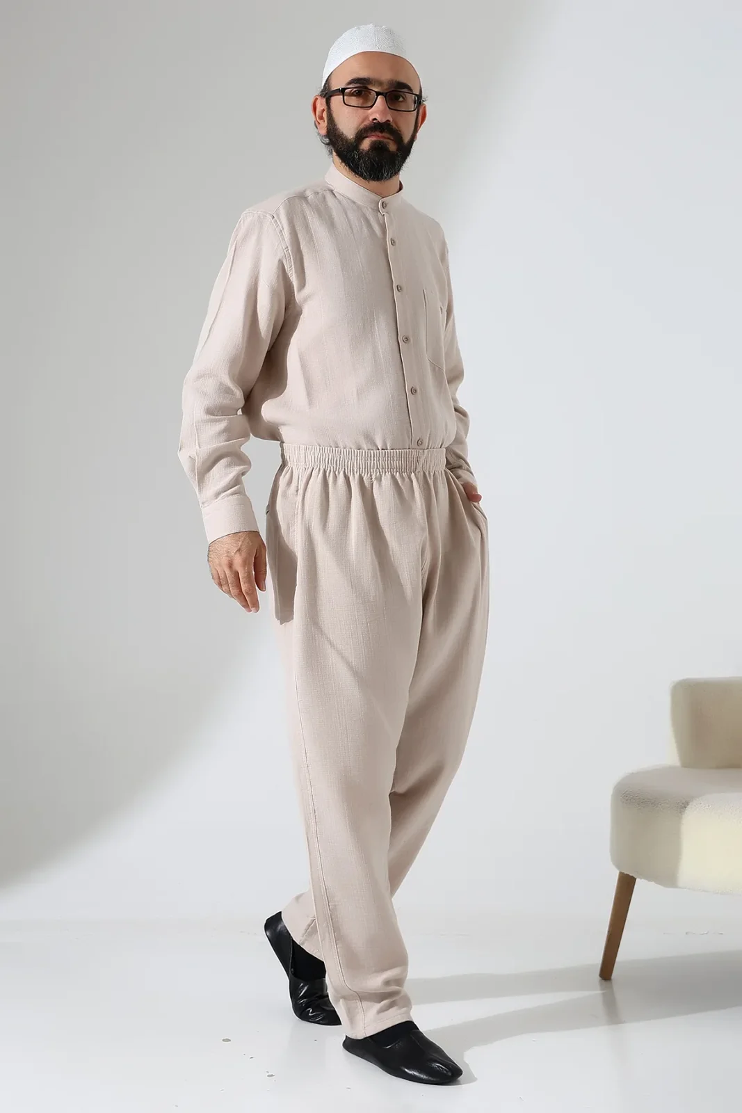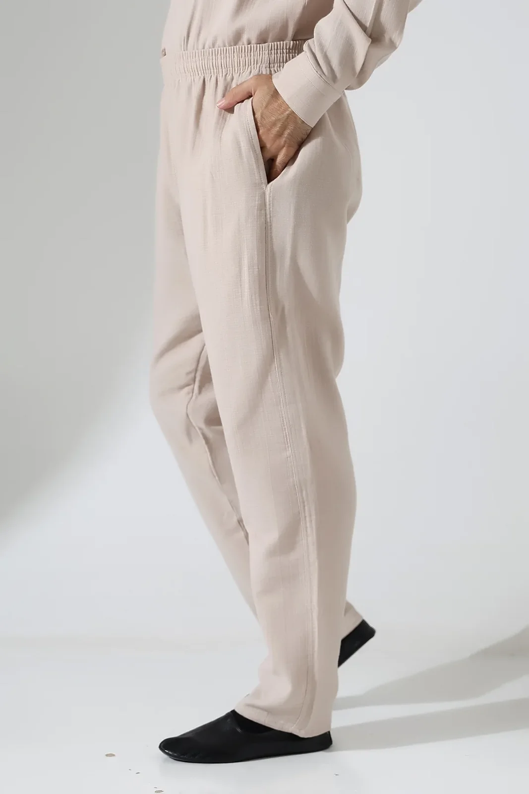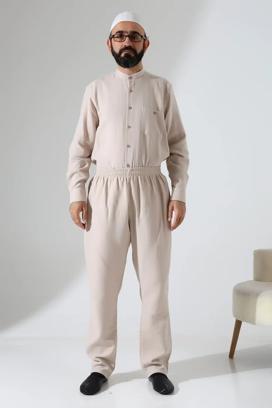 Erkek Lastikli Bel Cepli Hac Umre Müslin Pantolon - Bej (ANS)