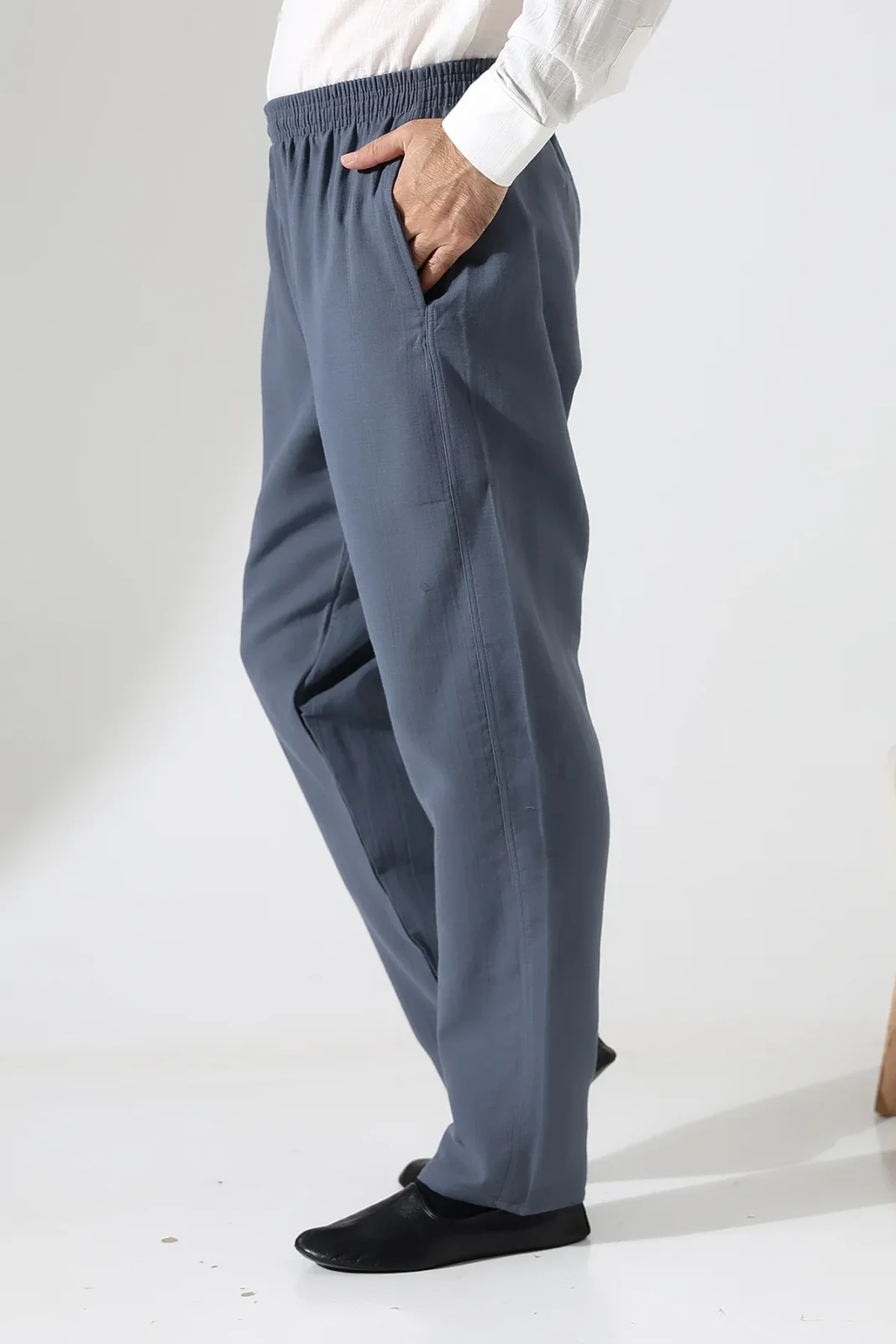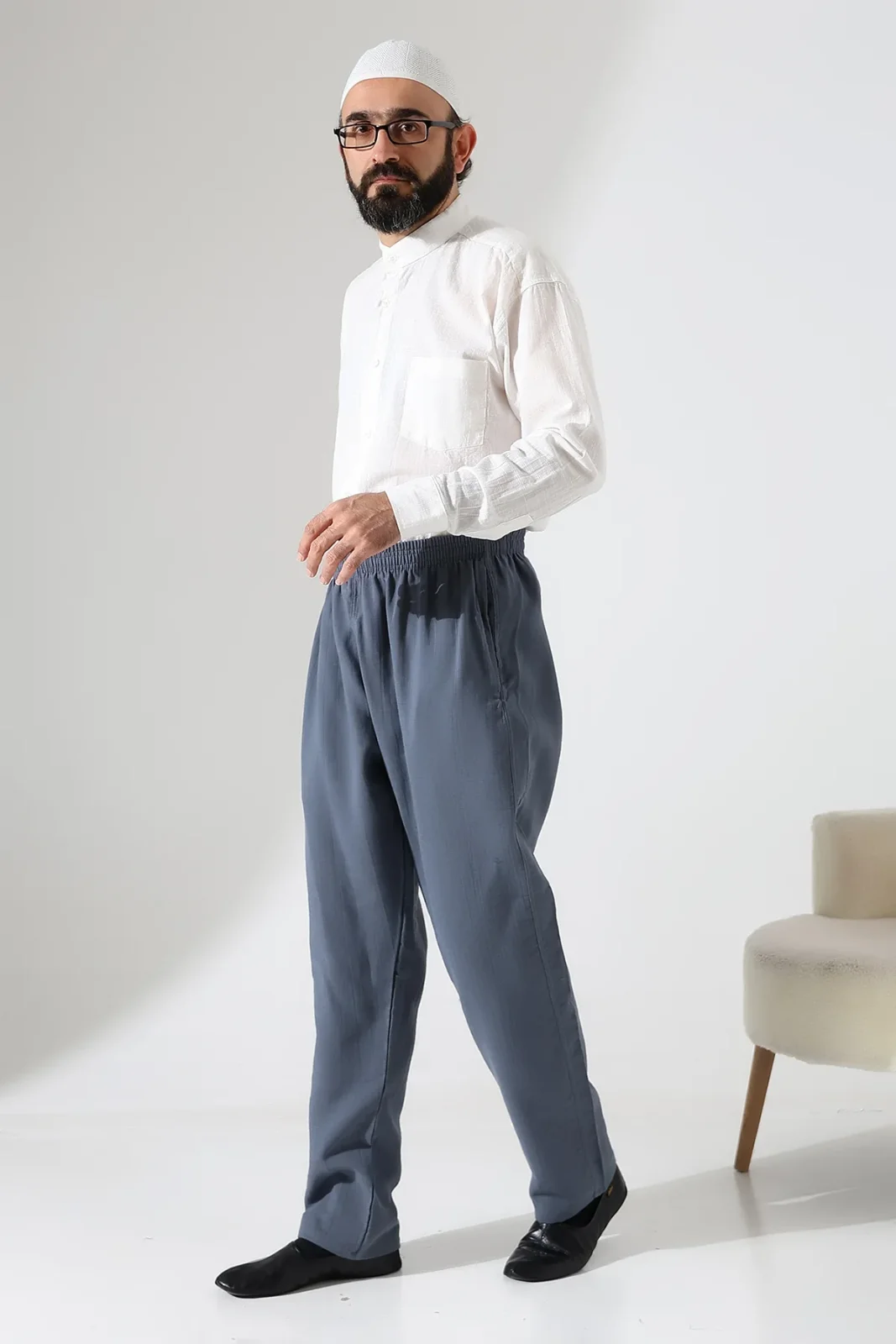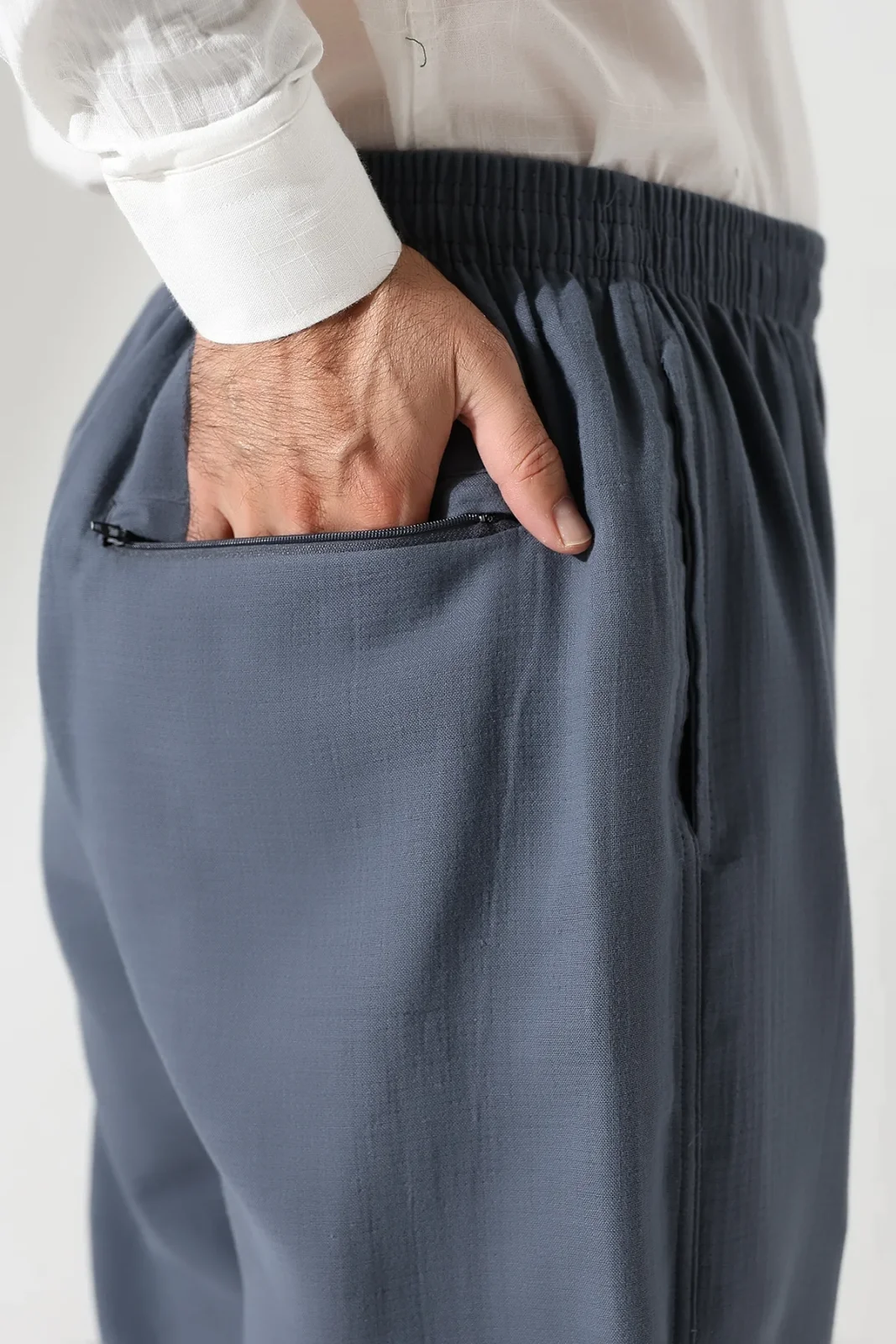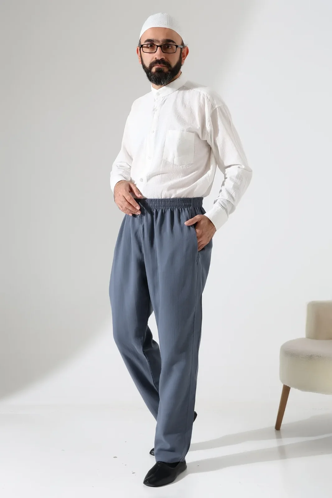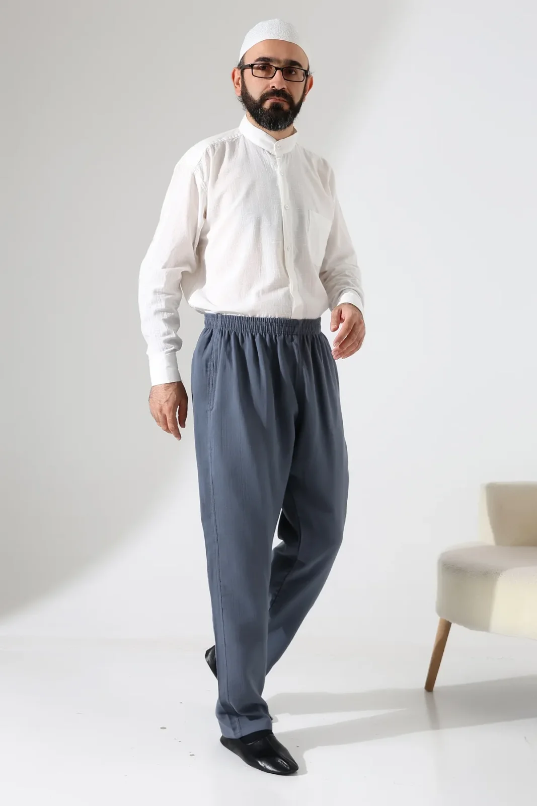 Erkek Lastikli Bel Cepli Hac Umre Müslin Pantolon - Füme (ANS)