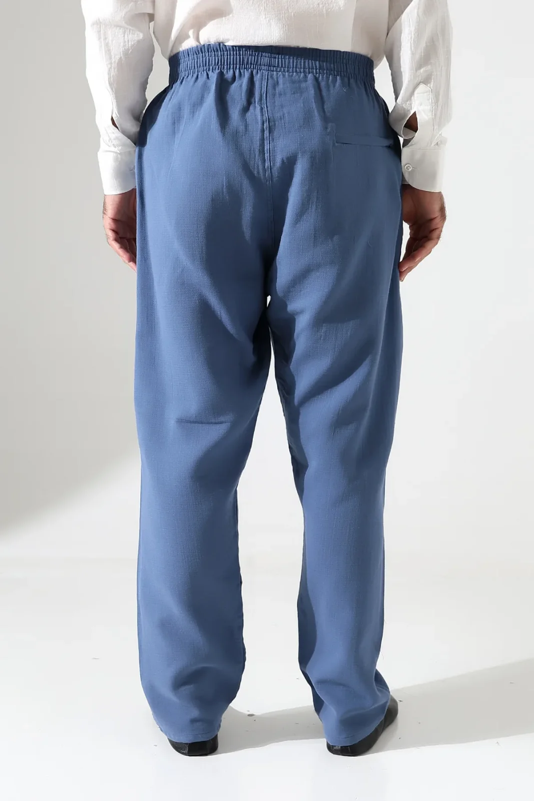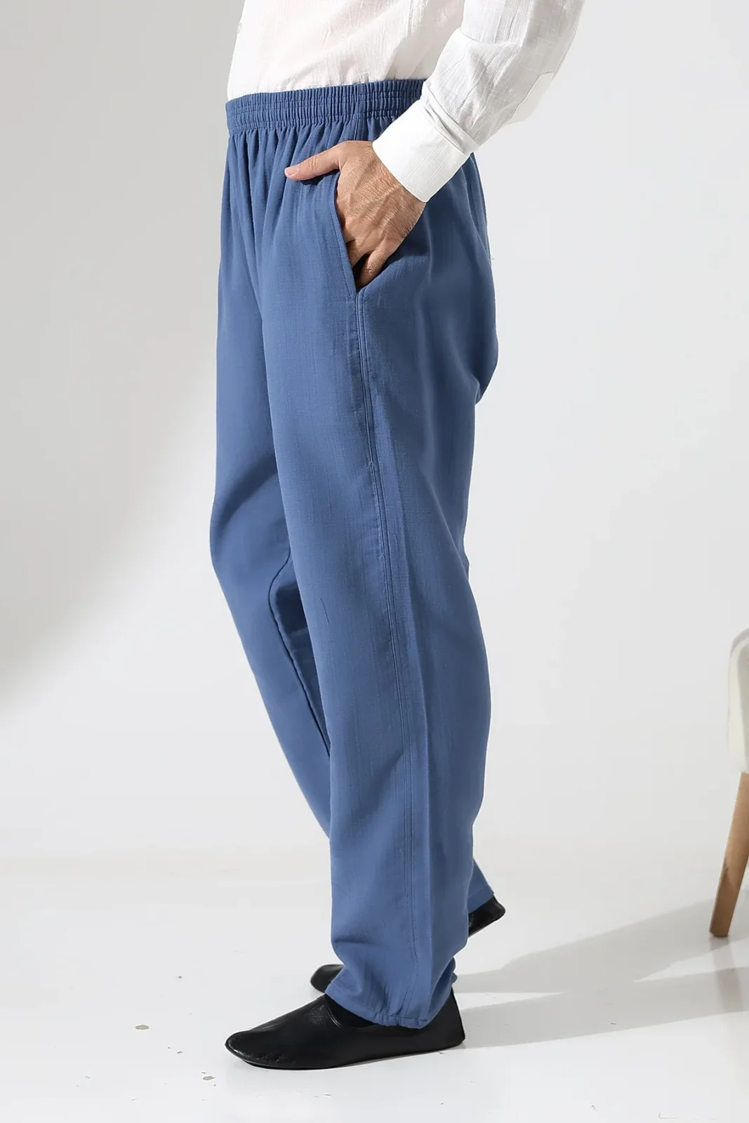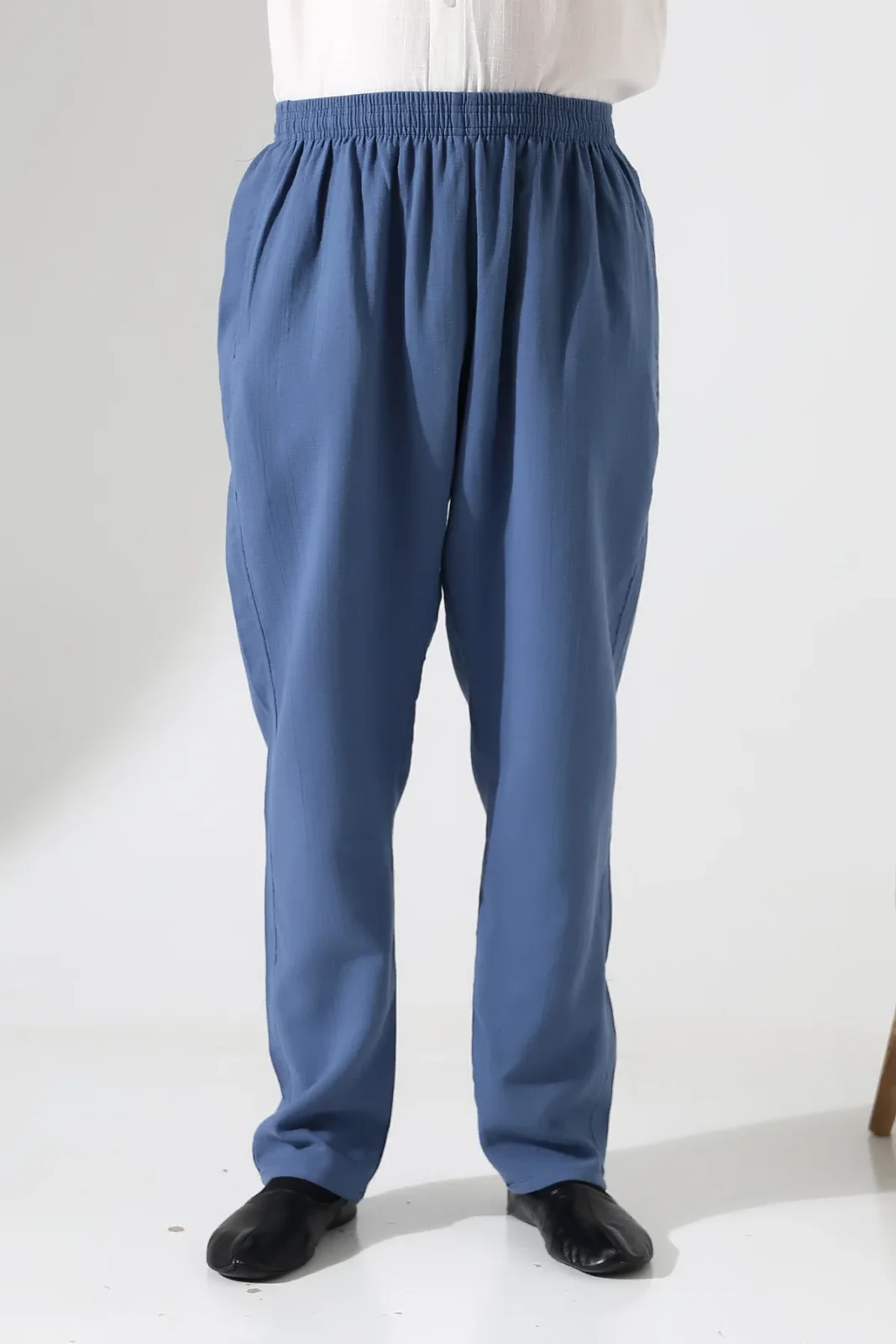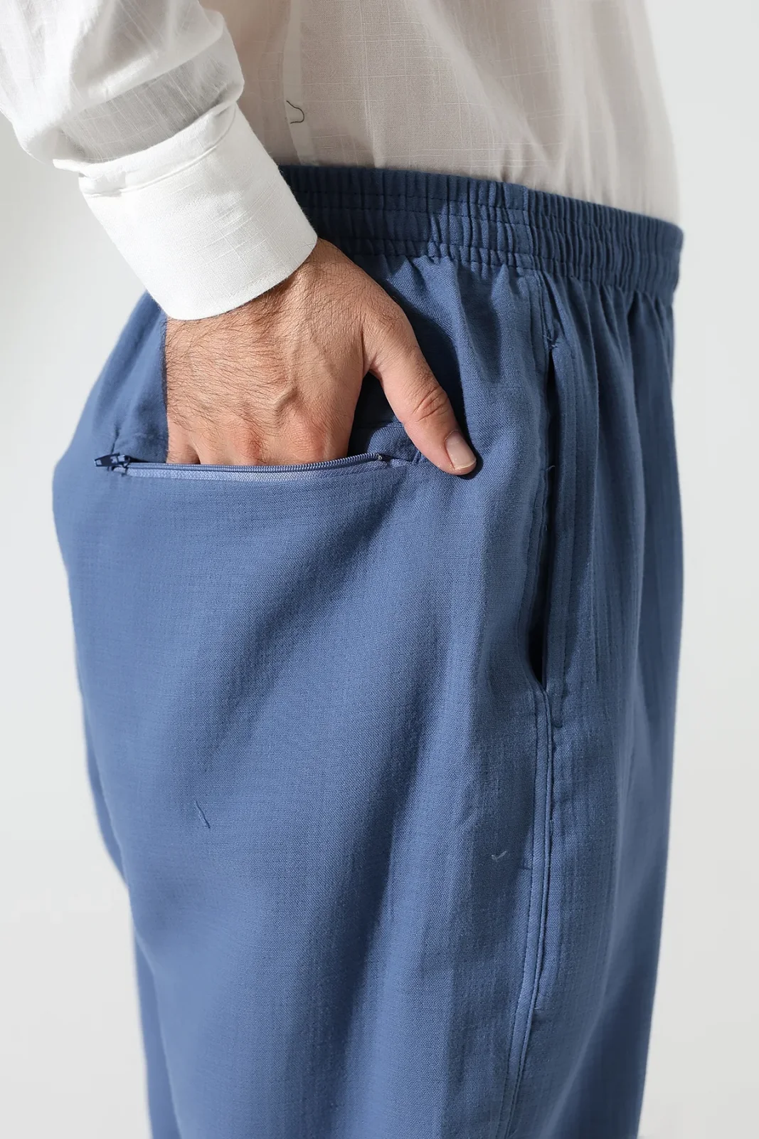 Erkek Lastikli Bel Cepli Hac Umre Müslin Pantolon - Mavi (ANS)