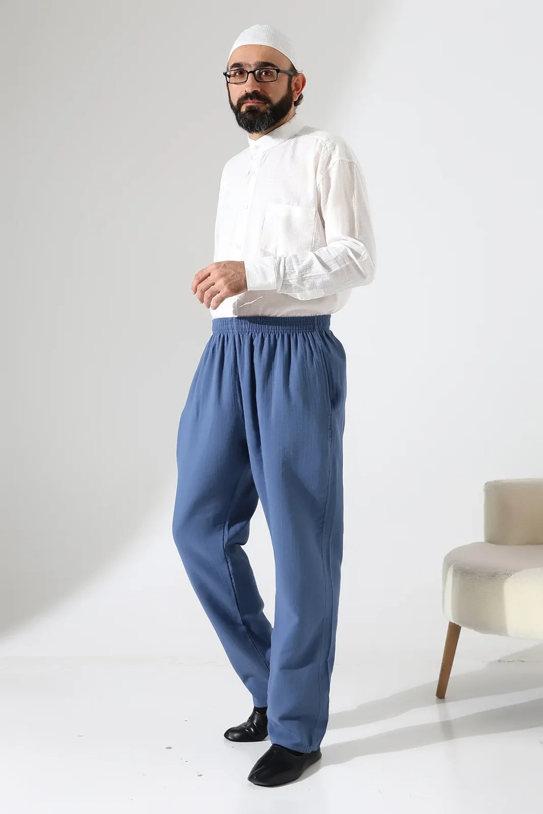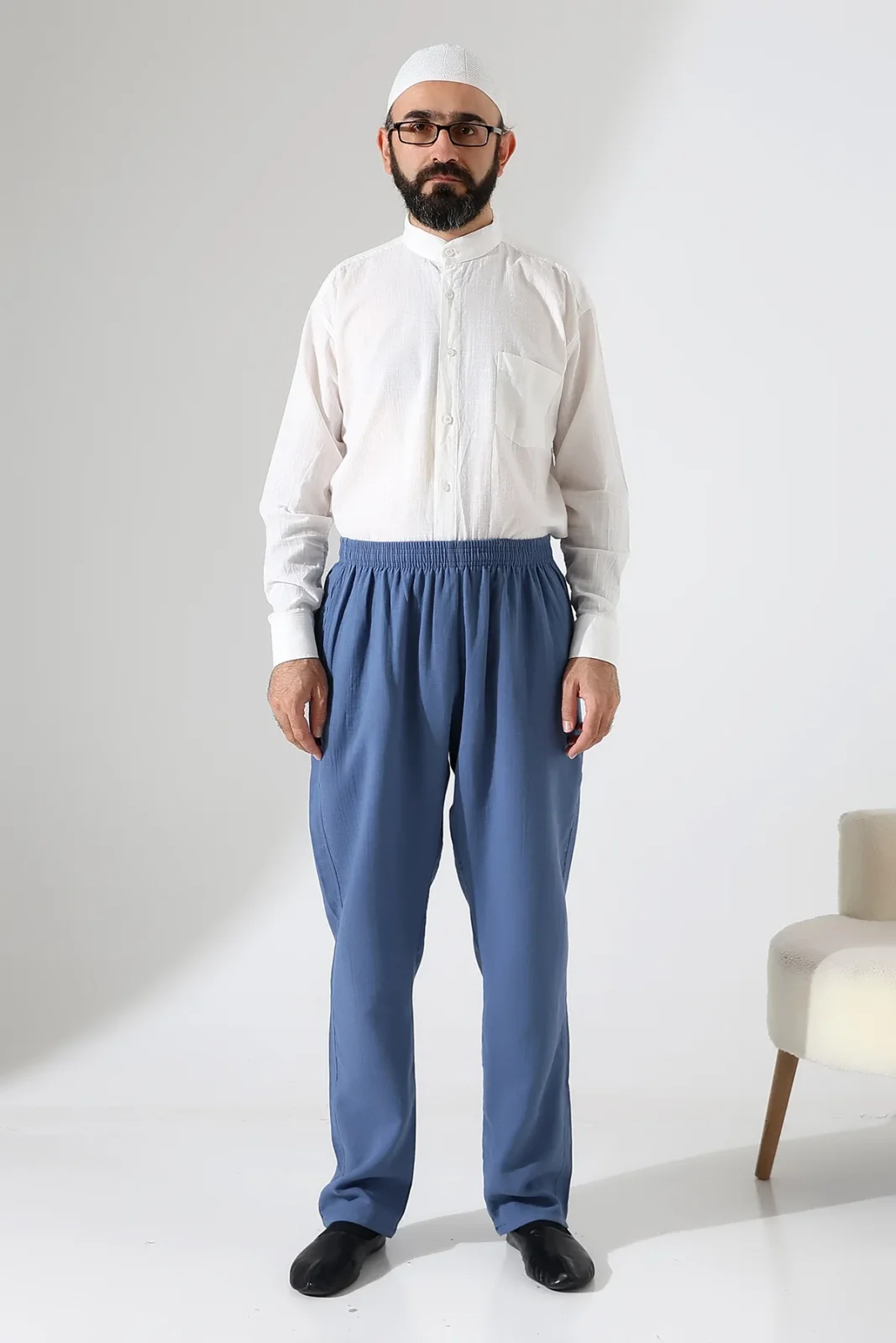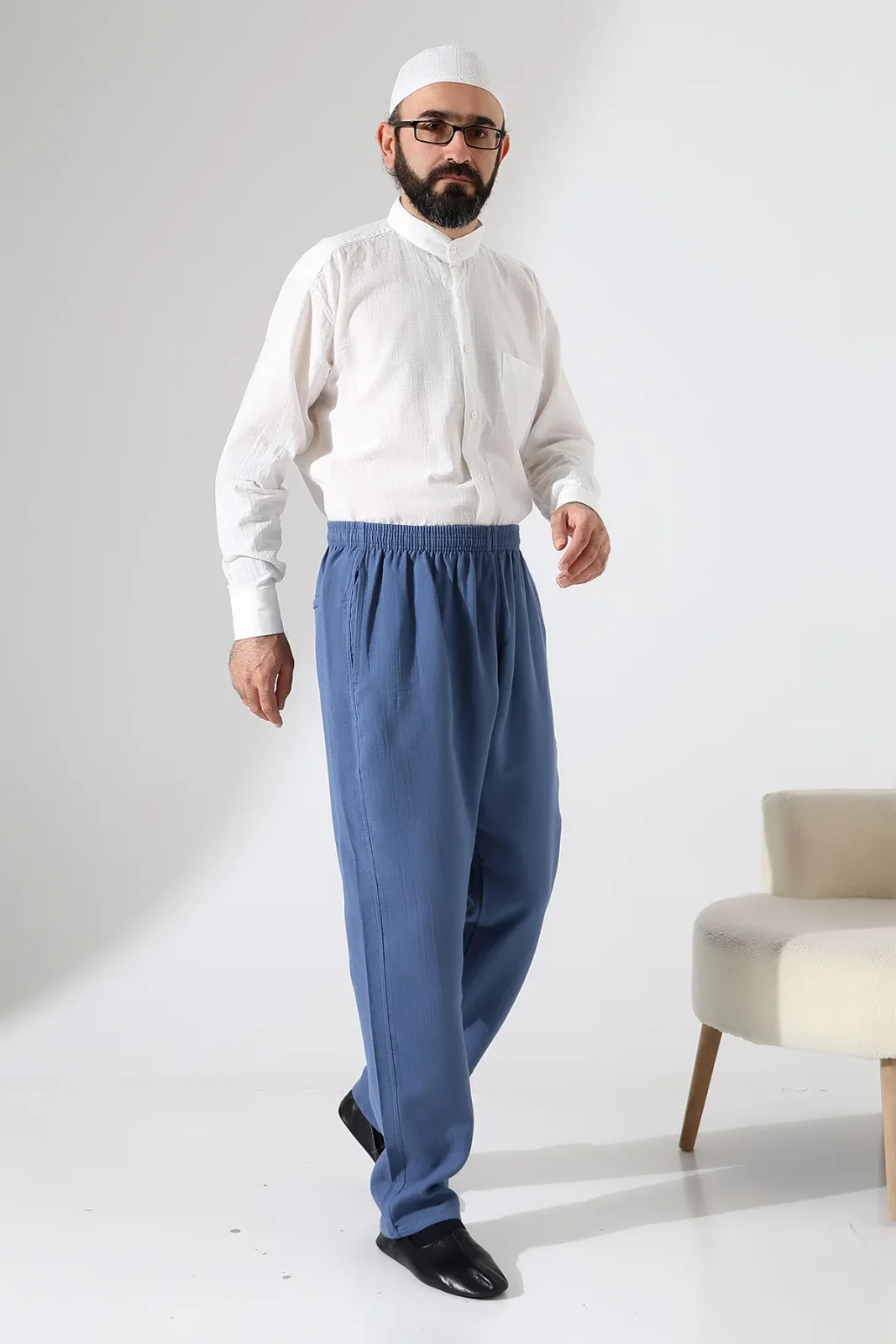 Pamuklu yapısı sayesinde nefes alabilen bu pantolon, hac ve umre yolculuklarınızda konfor sağlar. Lastikli beli ve çoklu cep detaylarıyla hem pratik hem de kullanışlıdır.