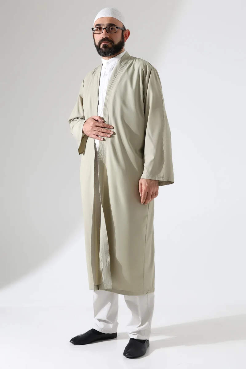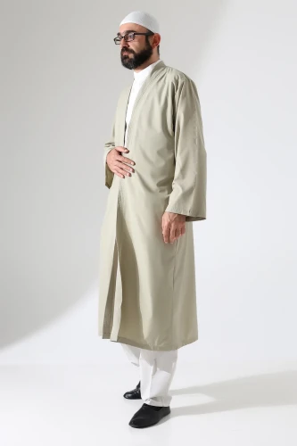 Erkek Namaz Elbisesi Buhara Yaka Cepli Namaz Cübbesi Bej- (Brt)