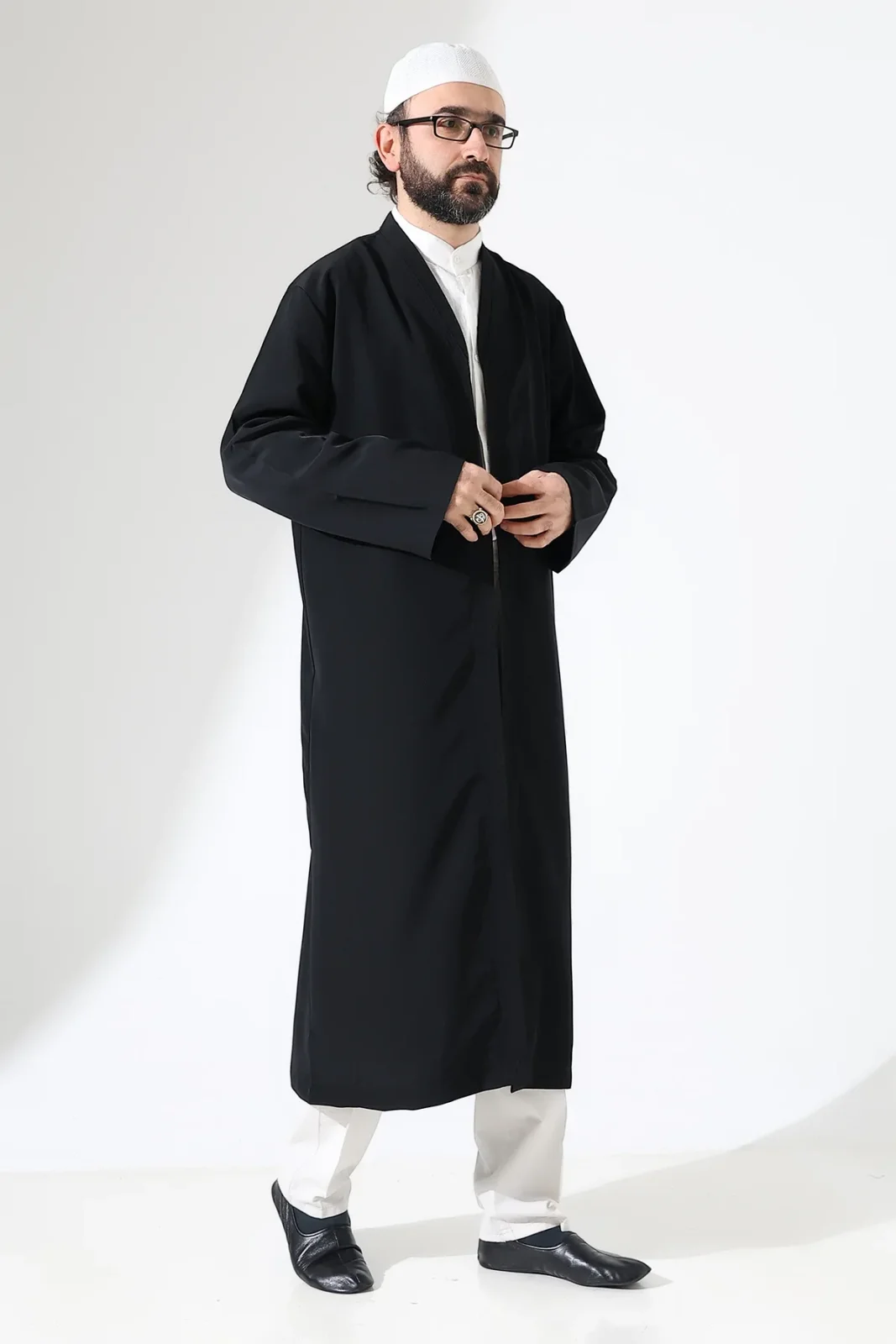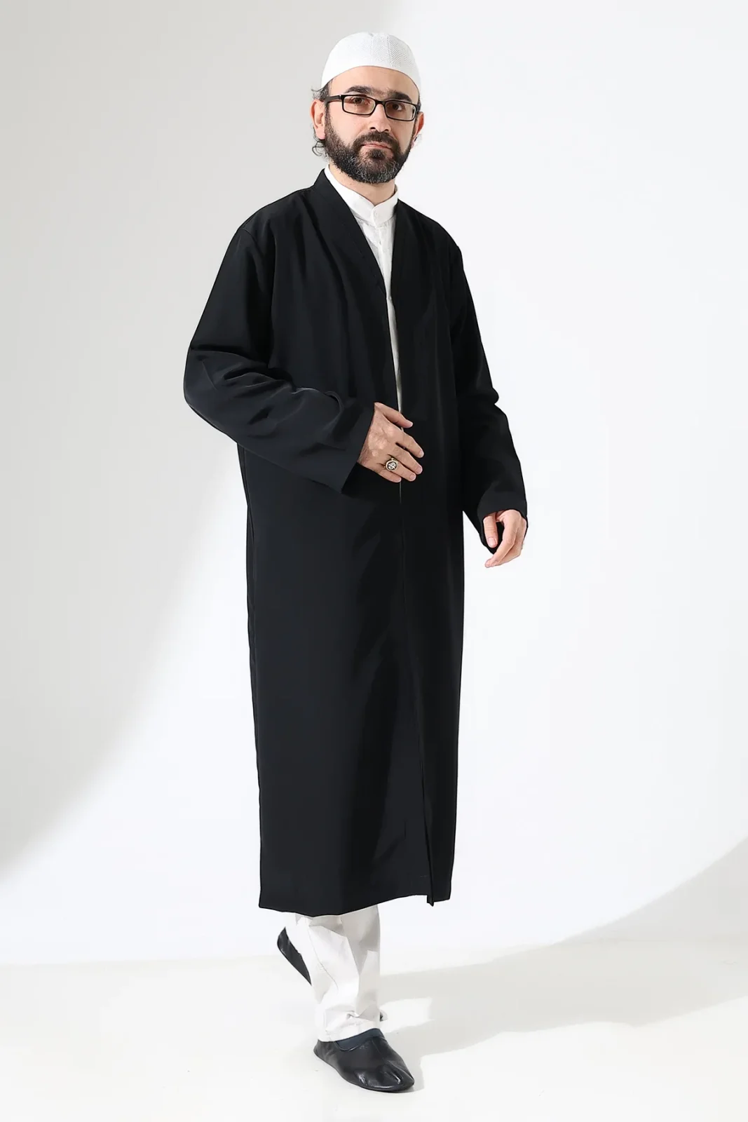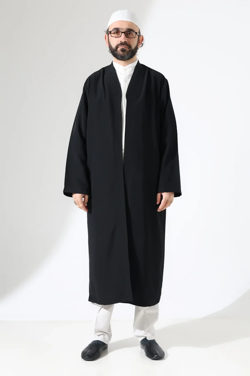 Erkek Namaz Elbisesi Buhara Yaka Cepli Namaz Cübbesi Siyah - (Sfa)