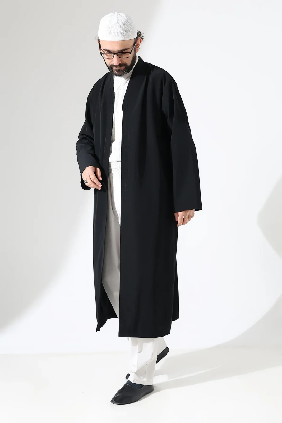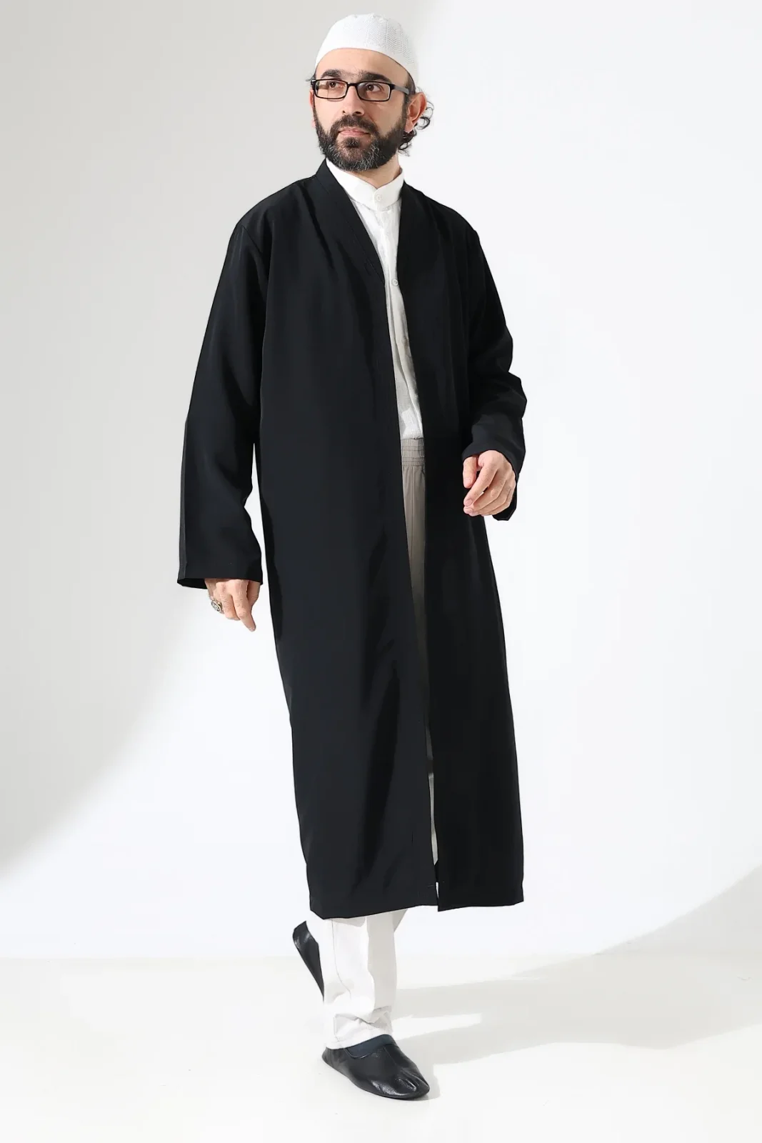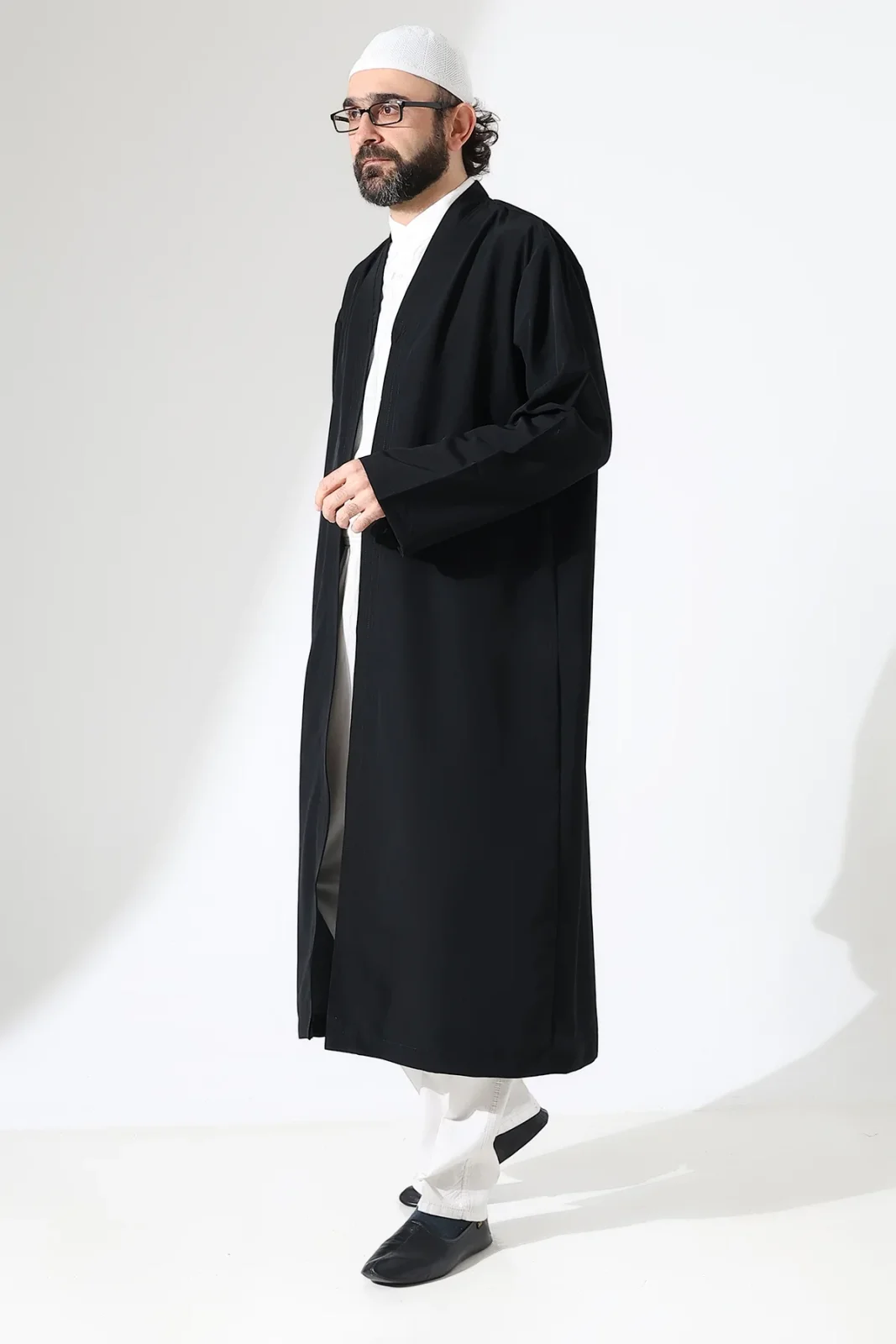 Erkek Namaz Elbisesi Buhara Yaka Cepli Namaz Cübbesi Siyah - (Sfa)
