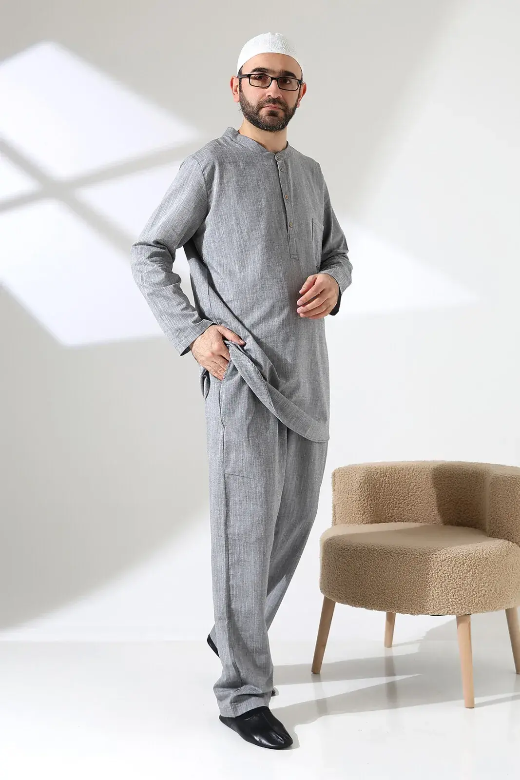 Hac, umre ve ibadetleriniz sırasında rahatlıkla kullanabileceğiniz bu takım, şık ve aynı zamanda sade tasarımıyla ibadetlerinizi huzur içinde gerçekleştirmenizi sağlar. Hafif ve nefes alabilir kumaşıyla hem uzun süreli kullanımda konfor sunar hem de günlük kullanıma uygundur.