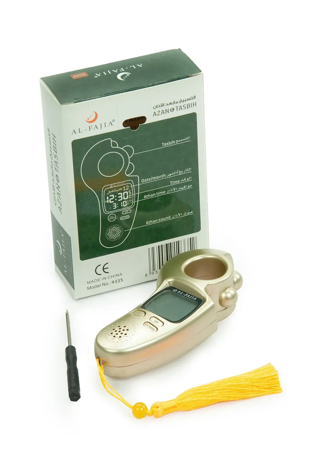 Ezan Okuyan Işıklı Sesli Kaydırmalı Al-Fajia Dijital Sayaç Tesbih Zikirmatik Gold