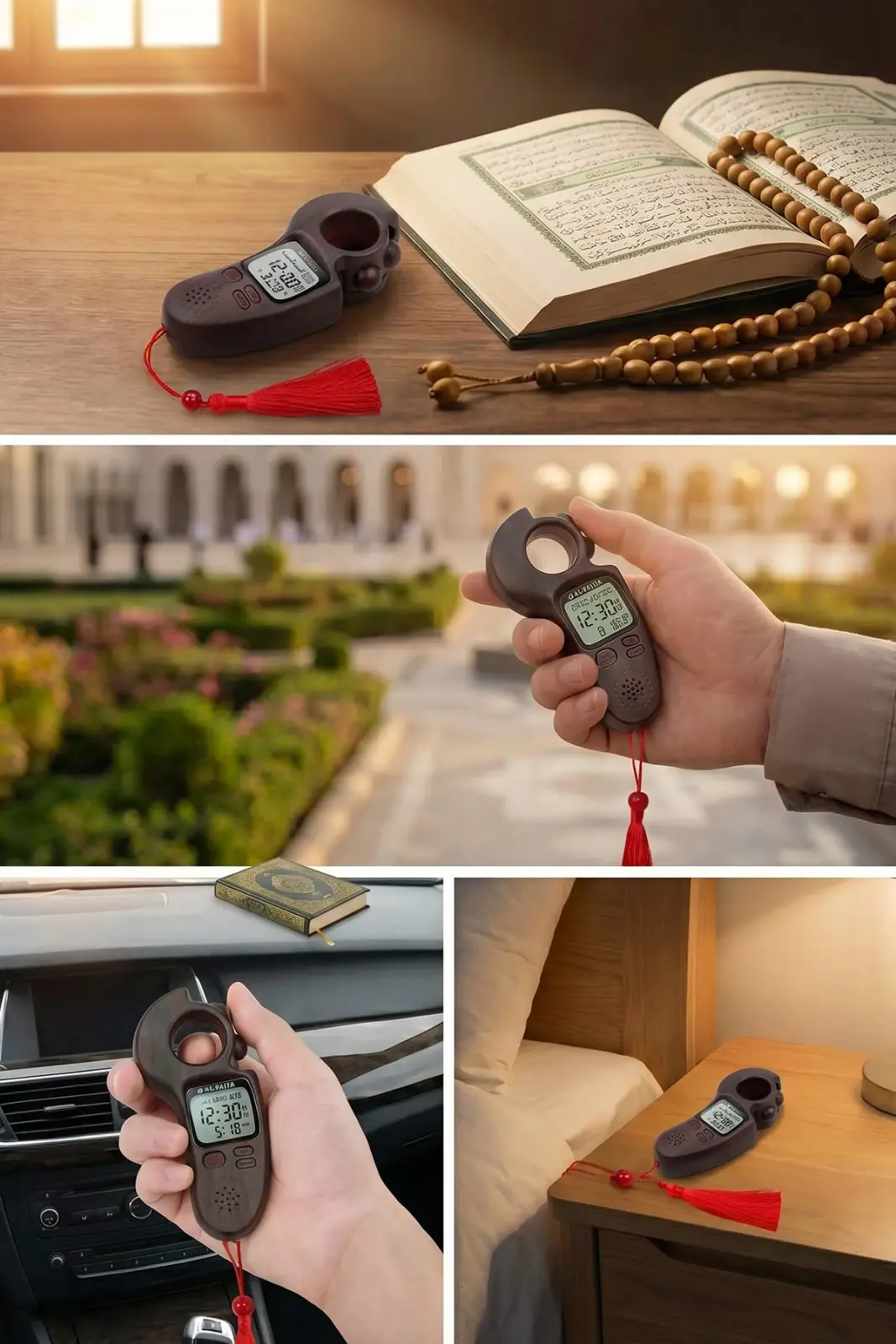 Ezan Okuyan Işıklı Sesli Kaydırmalı Al-Fajia Dijital Sayaç Tesbih Zikirmatik Koyu Kahve