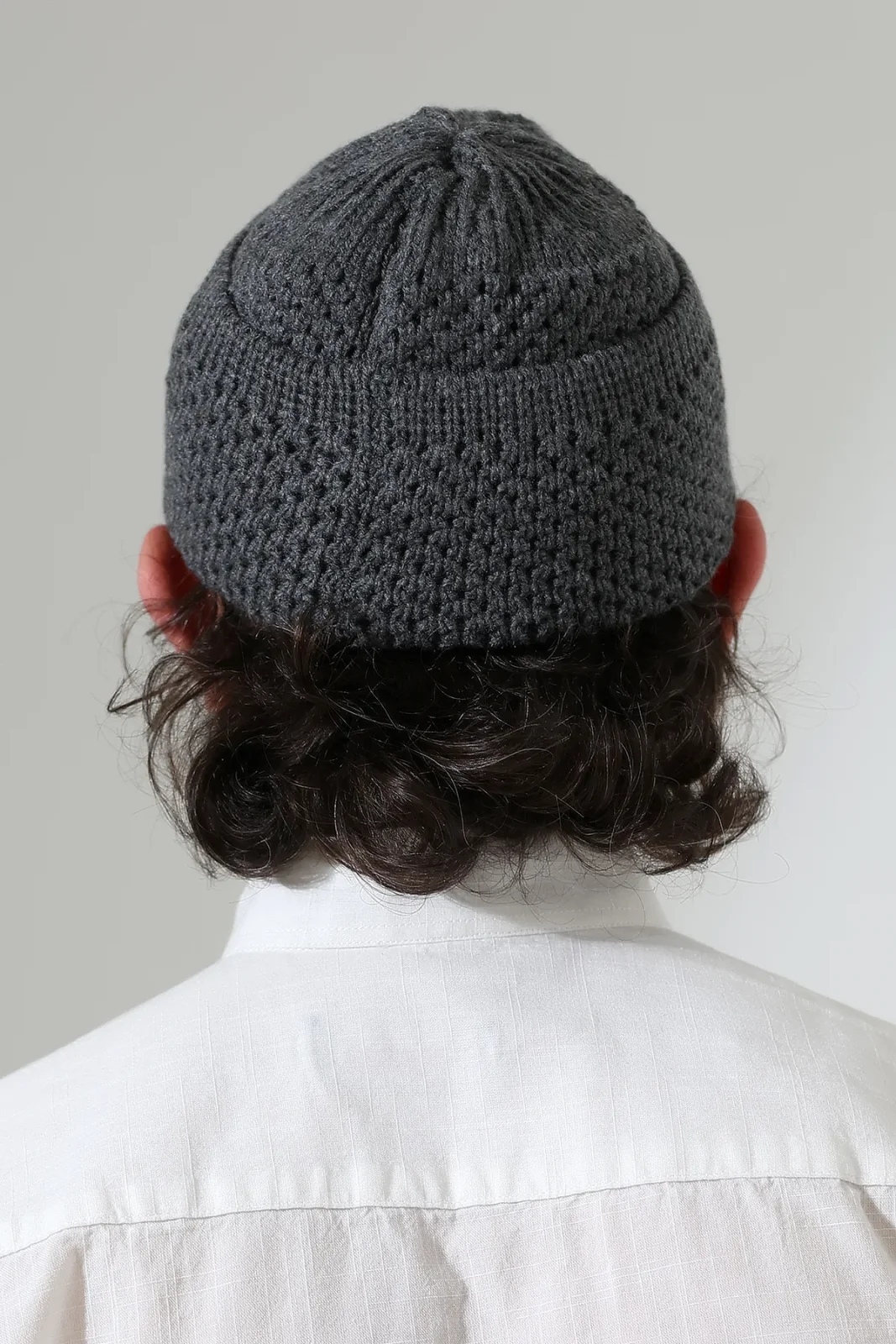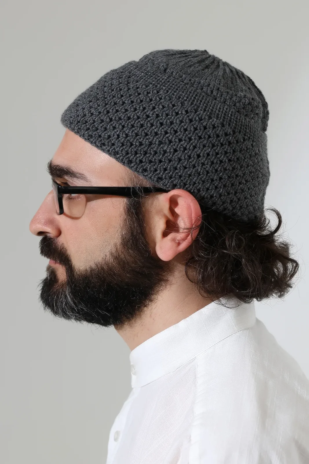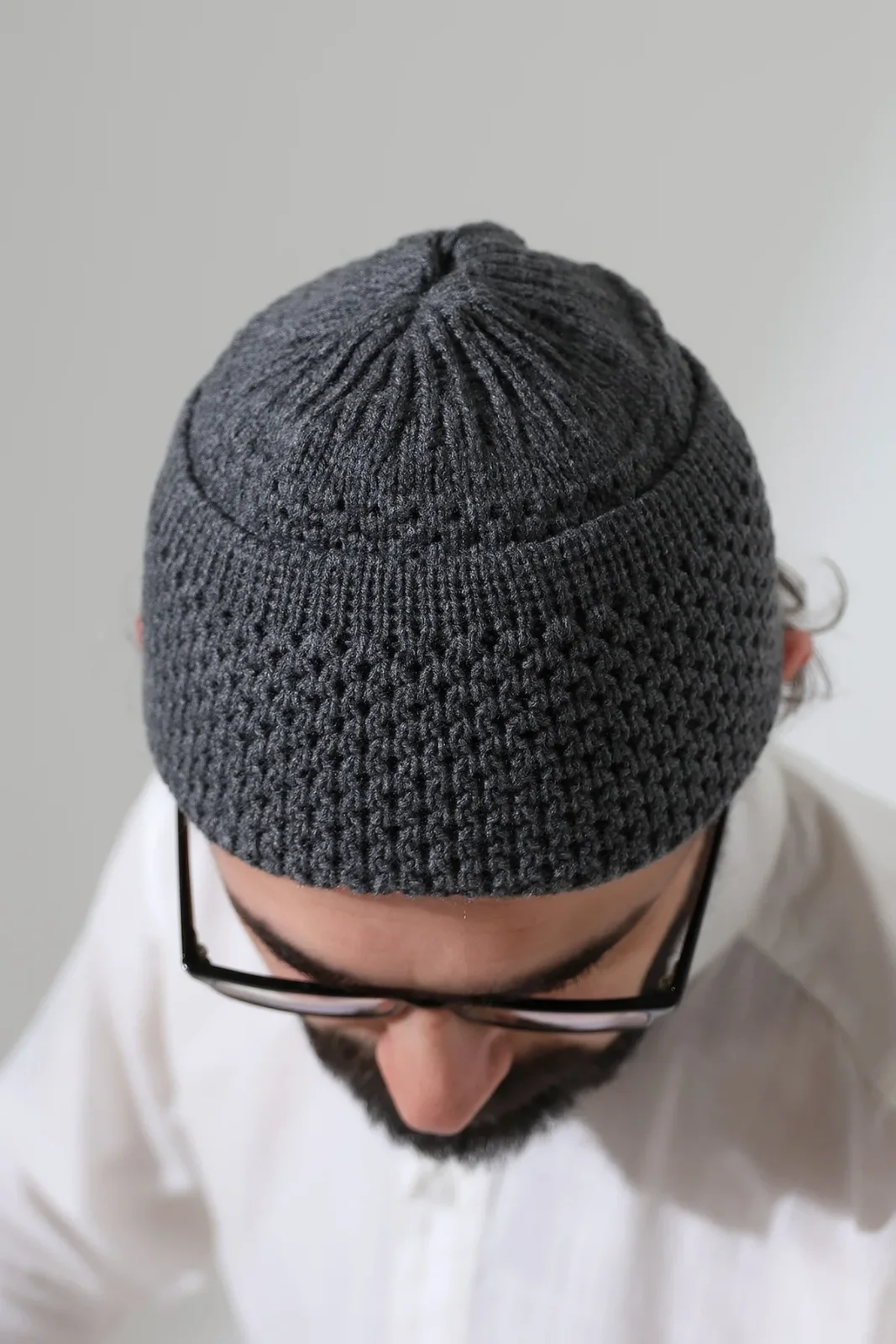 Fındık Desen Orlon Katlamalı Kışlık Namaz Takkesi, Sıcak Tutan Bere Takke Gri