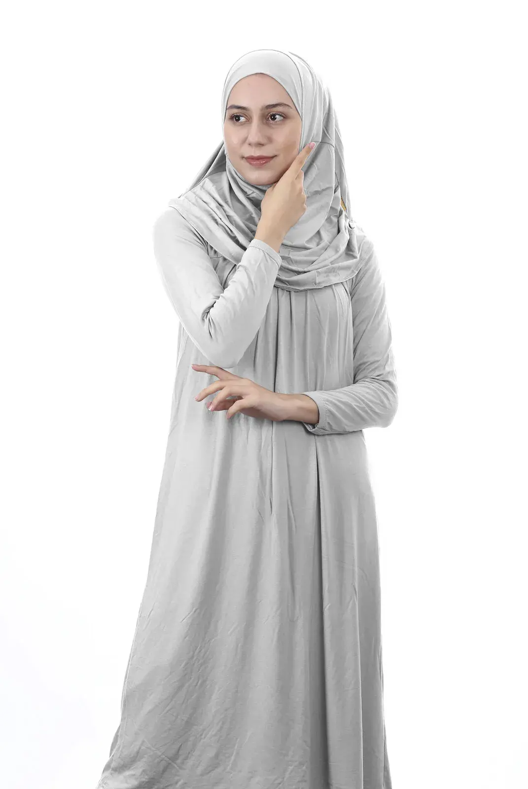 Garson Boy 12-15 Yaş Gri Kendinden Başörtülü Tek Parça Kadın Namaz Elbisesi