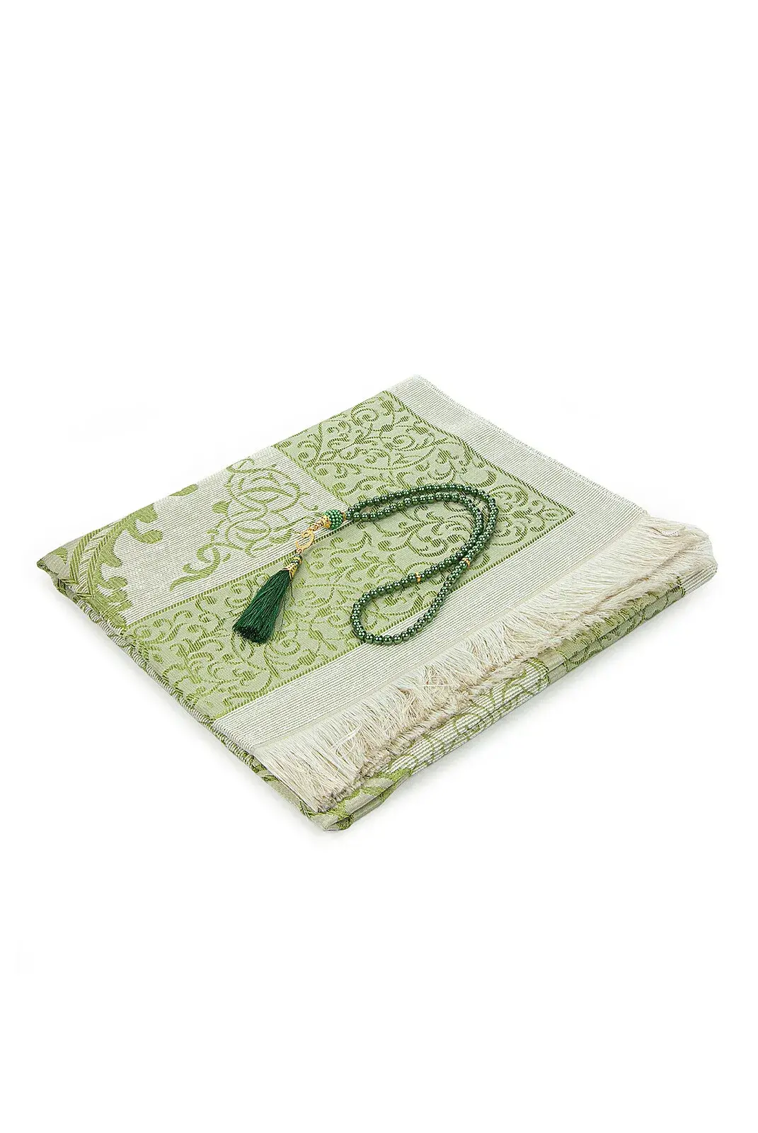 Gelin Damat Bohçasına Uygun Hediyelik Kutulu İnci Tesbihli Çeyizlik Seccade Seti Yeşil