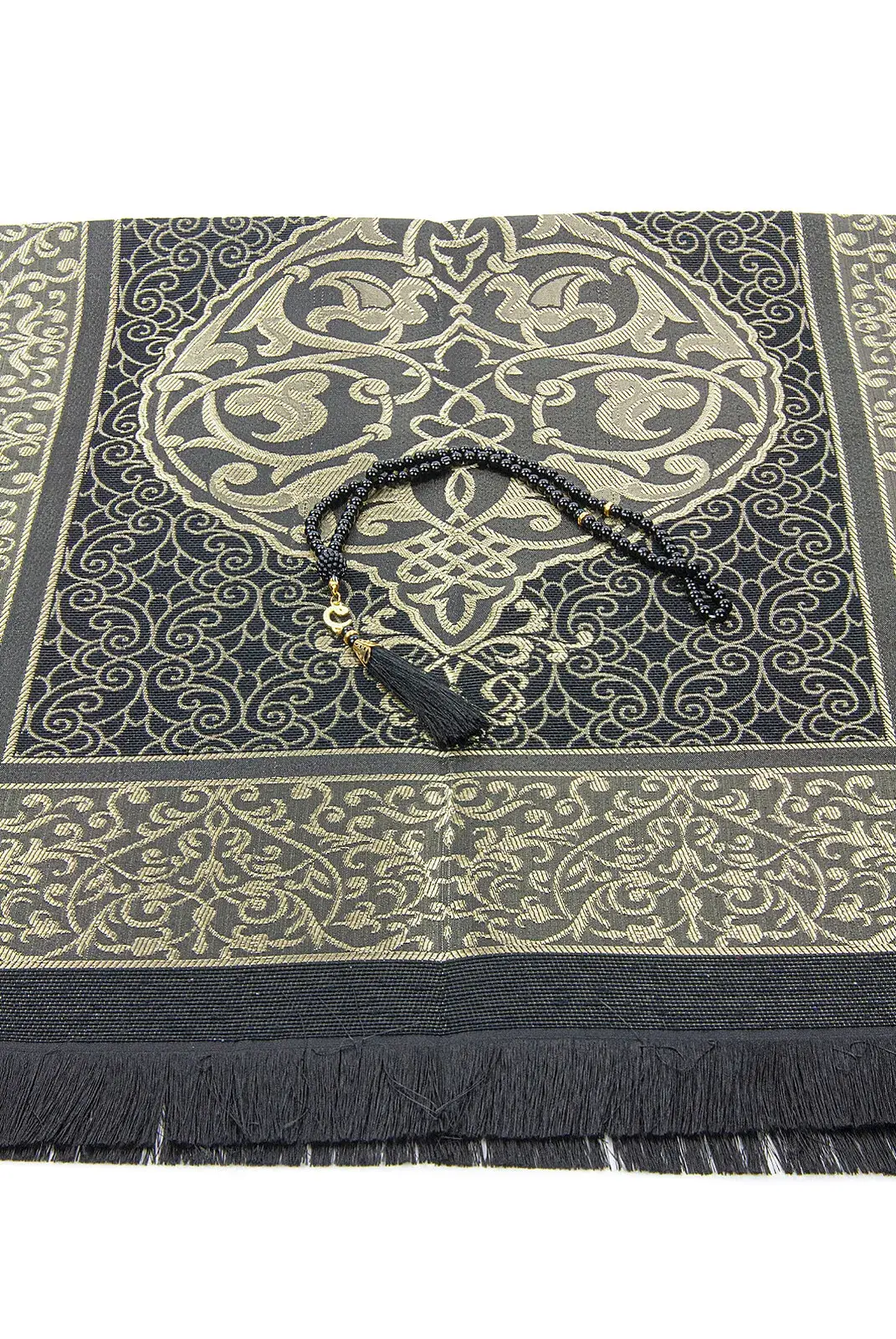 Gift Boxed Dowry Prayer Rug Set with Pearl Prayer Beads, Suitable for the Bride and Groom's Bundle, Black