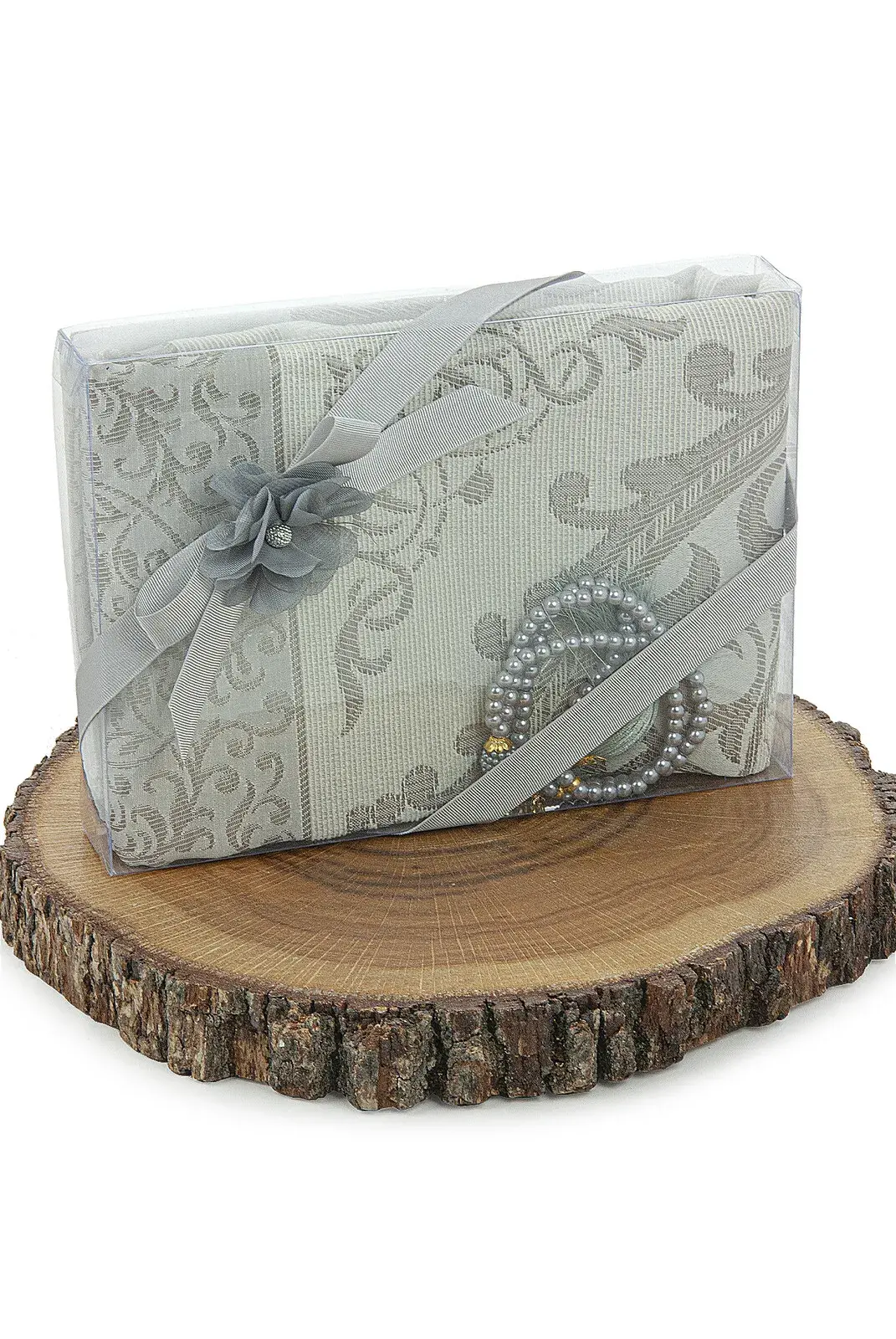 Gift Boxed Dowry Prayer Rug Set with Pearl Prayer Beads, Suitable for the Bride and Groom's Package, Gray