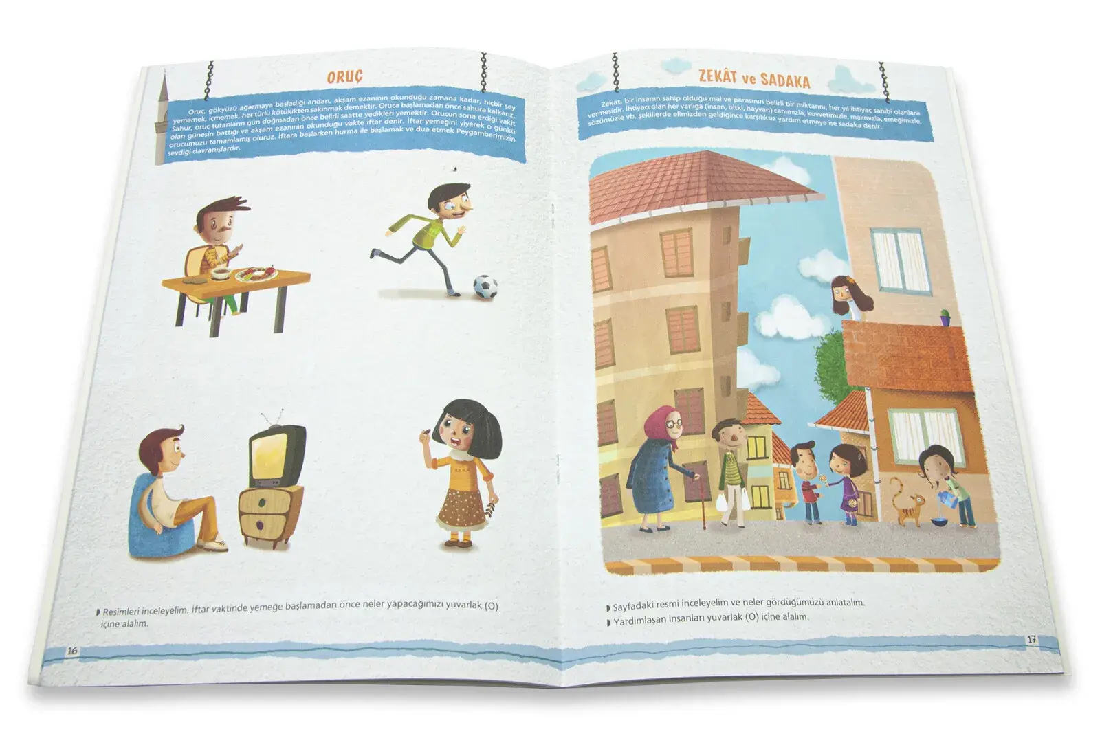 Dear Educators and Parents; The purpose of the Dictionary of Religious Terms is to create awareness in our children about our religious values and to familiarize them with the meanings of religious terms. As in all subjects, in religious education, "What age?", "What?", "How much?", "How?" Questions and answers are very important. When it comes to the child, the "balance of capacity and need" should never be forgotten. What is given without need, even if the capacity is high, harms the body and is thrown away by the body because it cannot be digested. Knowledge is always learned, but behavior is not always formed. Behavior and emotional connections and feelings are very effective in the formation and reinforcement of thoughts. Another point to be noted is that religious concepts and negative emotions should never be combined. However, from a pedagogical point of view, it is necessary to have knowledge about age periods in the acquisition of feelings, behaviors and thoughts in child development. When we examine it in general terms; 2-7 years old senses and emotions are more dominant, the child receives data with his senses. Between the ages of 7-12, the mind is more active, but the concrete period is still in progress. Abstract thinking is activated after 12 years of age. Therefore, when it comes to learning and teaching, both the developmental stages and characteristics of the child and the key concepts of the child's world (play, movement, curiosity, imagination, compassion and love) should be taken into account. In the preparation phase of the Dictionary of Religious Terms, the Pedagogical Guide for Religious Educators (Pedagogical Association, 2014) and the books and websites of our Presidency were used as resources. "Make it easy, don't make it difficult. Give good news, don't make hate." The Prophet's advice in the form of a cornerstone was accepted. Since it is addressed to the pre-school period, "familiarization" is aimed. Simplicity and implicit teaching were preferred in information, and care was taken to prevent the child from being alienated from religion by overloading information. The activities given as examples are hints and are suitable for the necessary arrangements and additions by the adult depending on the needs and capacities of the child/children. Wishing for a life in which we internalize religious terms with the harmony of the Qur'an and Sunnah...
