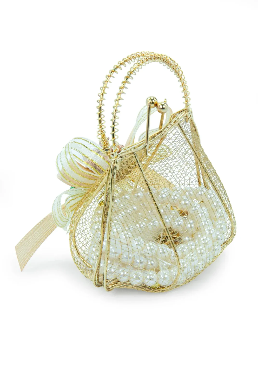 Gold renk metal çerçeveli mini süs çantası