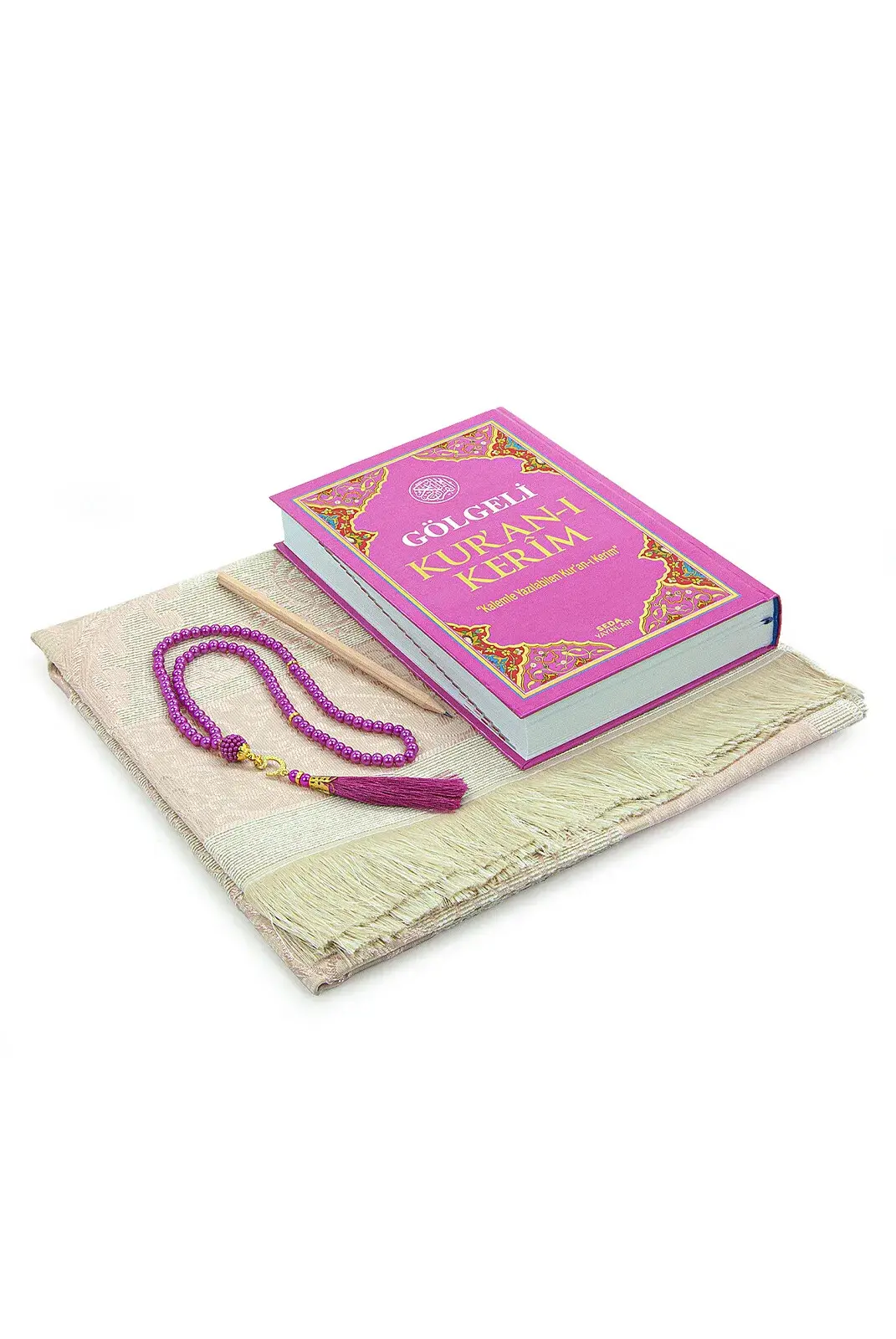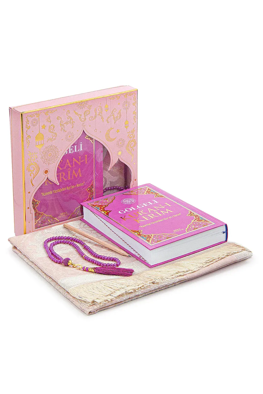 Gölgeli Kuranı Kerim Seti Tesbihli Seccade Seti Pembe