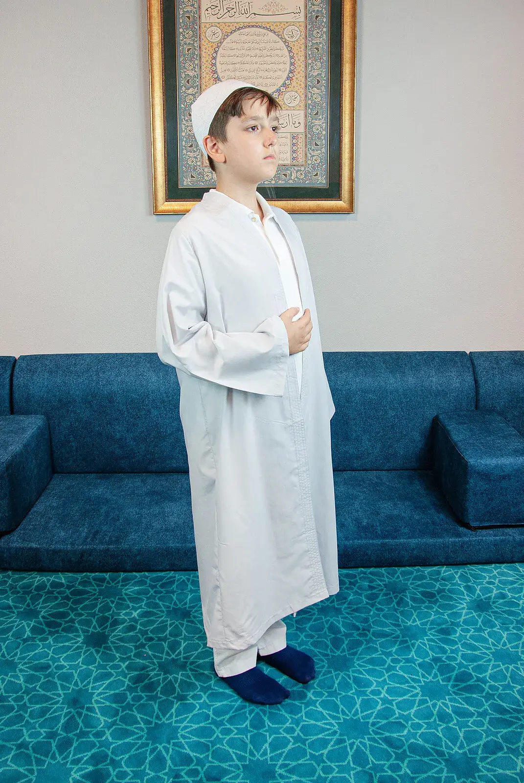 Gri Buhara Yaka Namaz Elbisesi Erkek Çocuk Cübbe