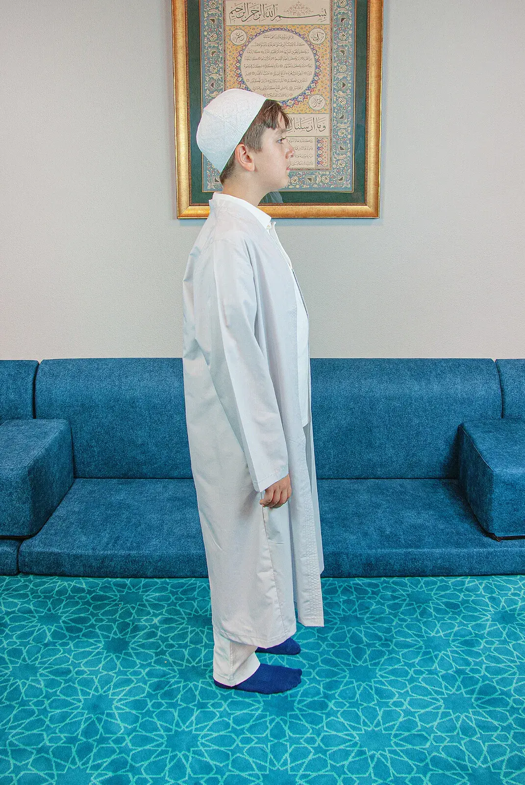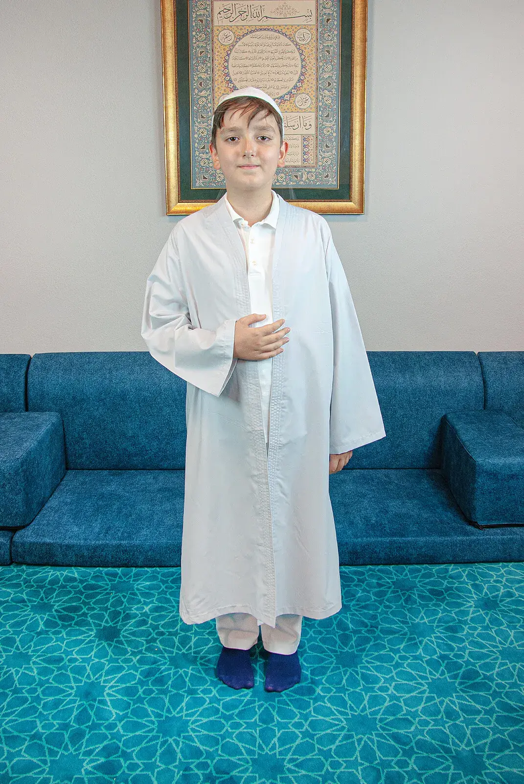 Bu namaz cübbesi, rahat kesimi ve düğmesiz önü açık tasarımıyla çocuklar için hareket özgürlüğü sağlar, bu da ibadet sırasında rahatlıkla giyilmesini sağlar. Hem gündelik kullanıma hem de özel ibadet anlarına uygun bir kıyafettir.