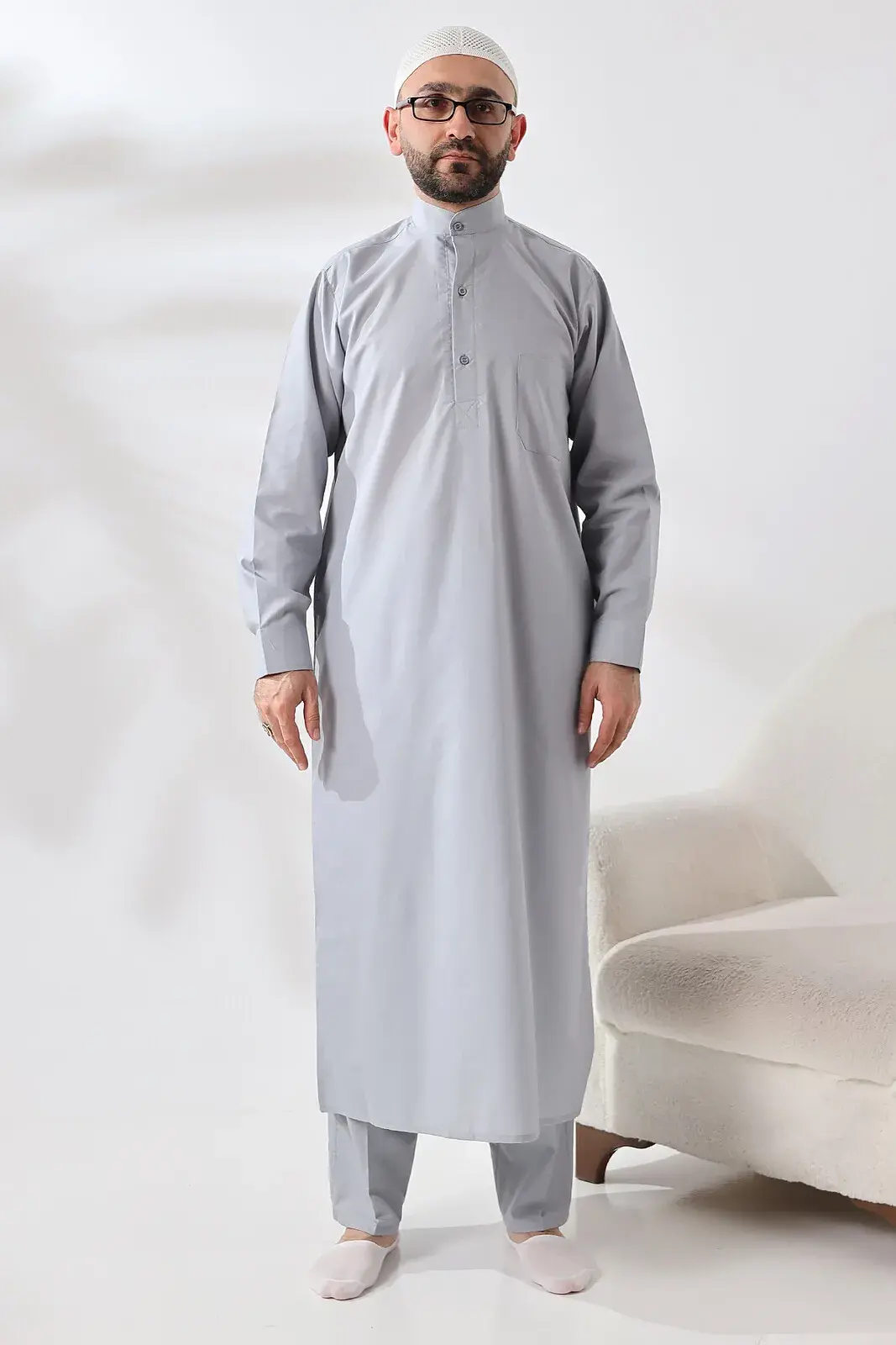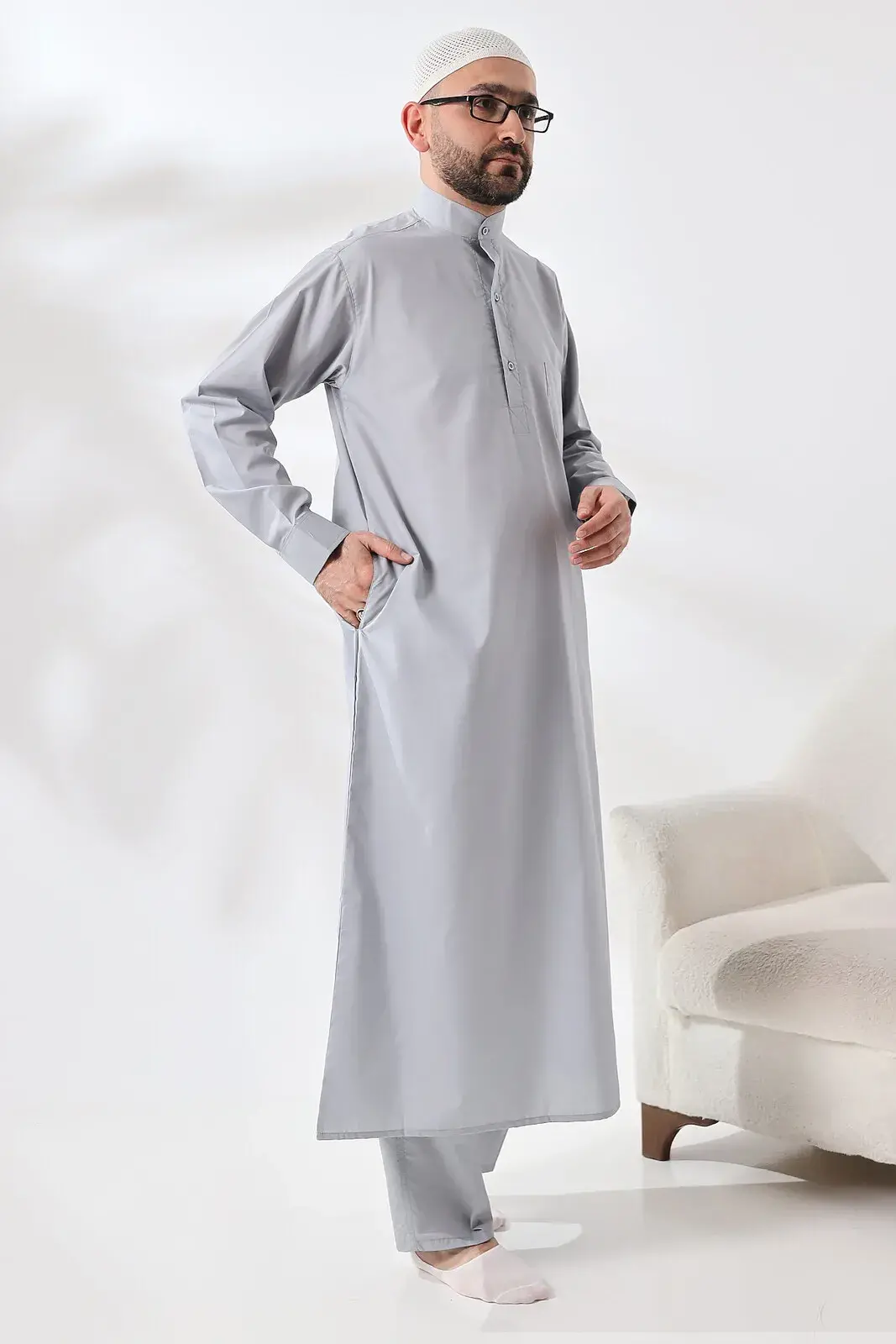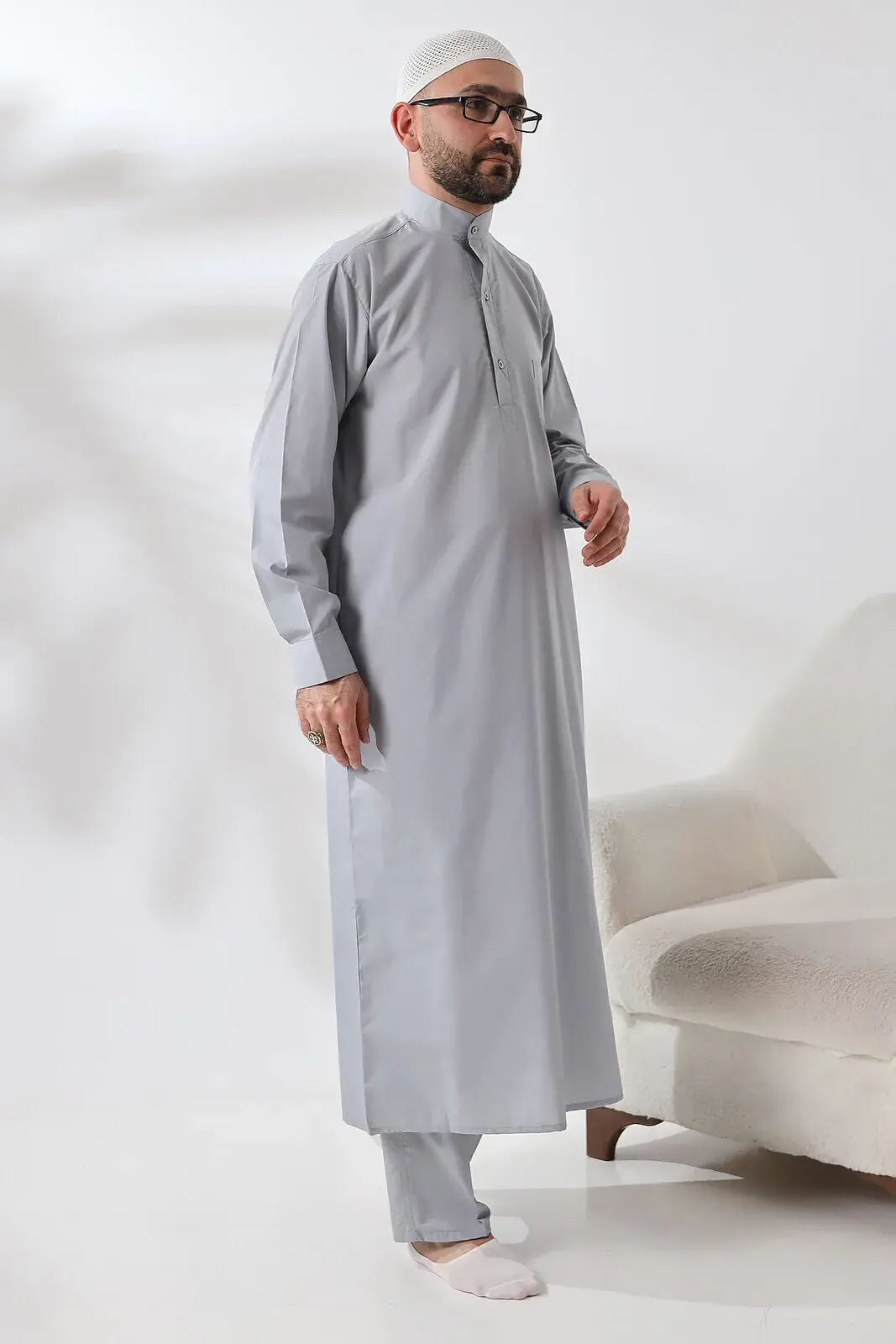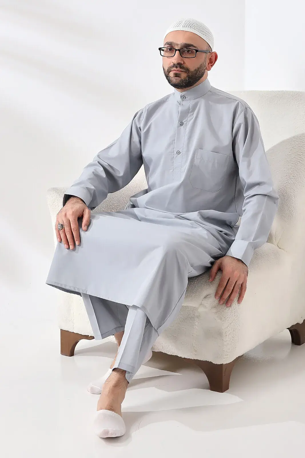 Gri Çınar Dagron Kumaş Erkek Hac Umre Kıyafeti Fistan Takımı