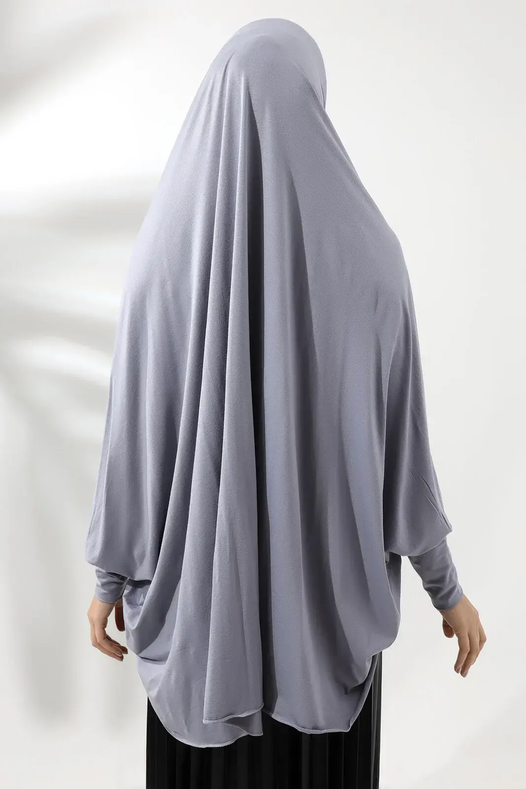 Gri Hazır Pratik Sultanbaş Tesettür Kollu Penye Sufle Eşarp Hijab