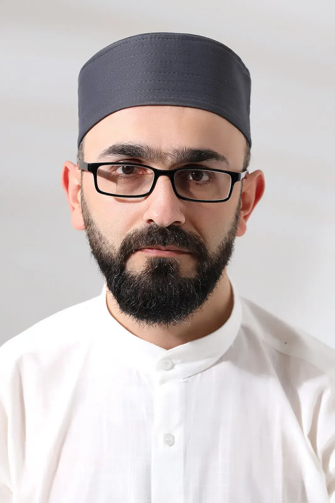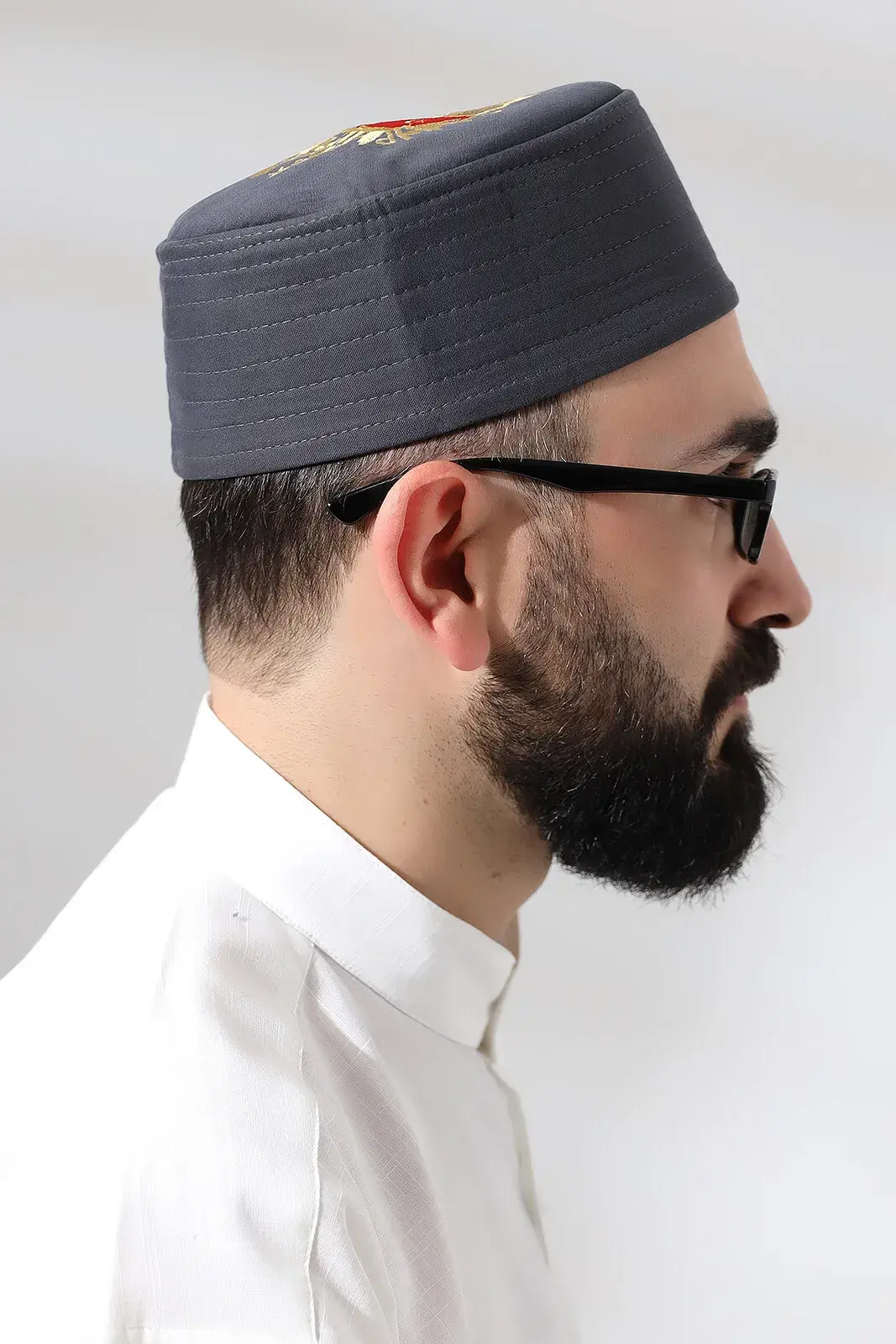 Gri Kapitone Osmanlı Arma Nakışlı Kalıp Namaz Takkesi