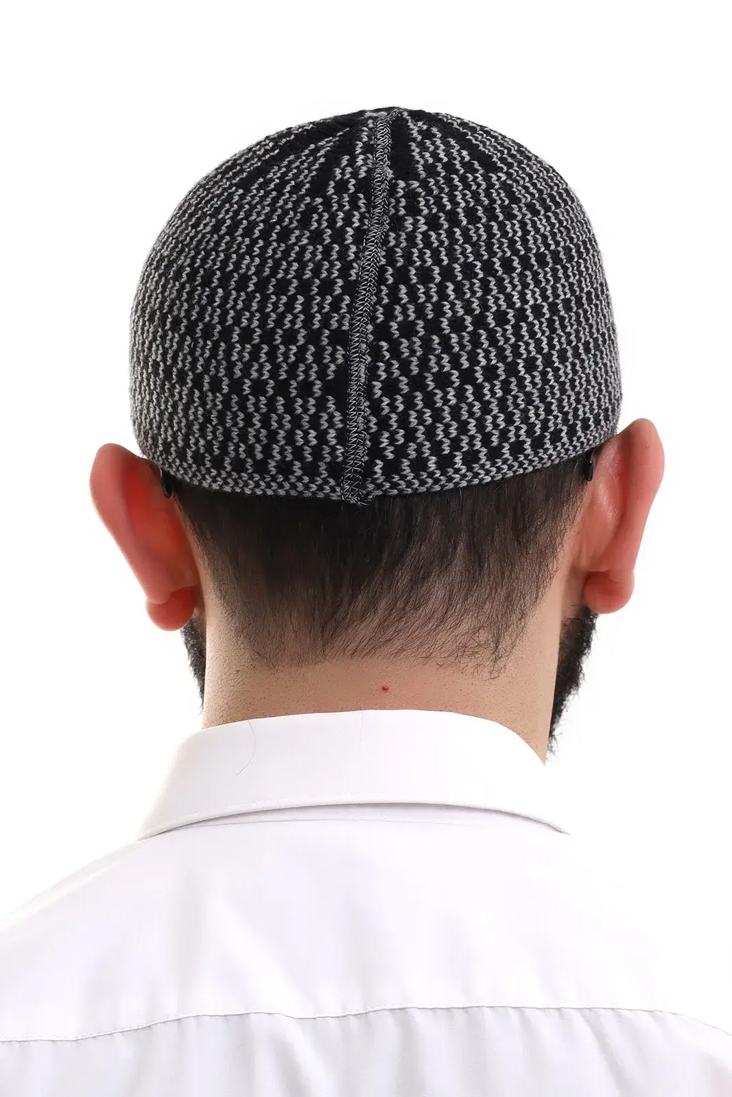 Gri Orlon Kışlık Namaz Takkesi Baklava Desenli Takke