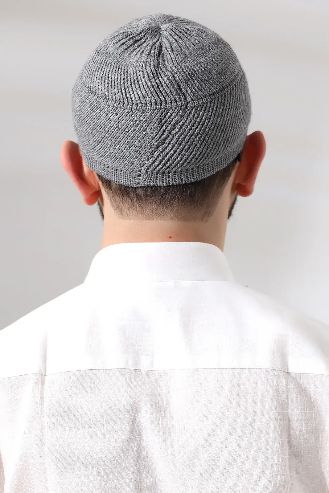 Gri Süper Namaz Dantel Detaylı Örme Orlon Namaz Takkesi