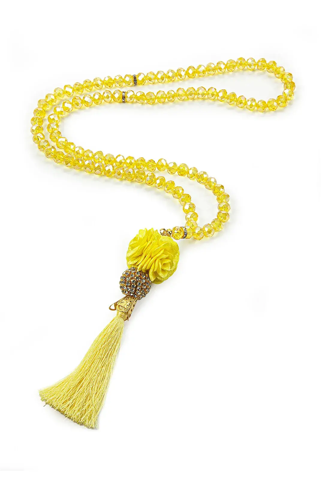 Gül Püskülü Detaylı Kristal Görünümlü 99lu Hac Umre Hediyelik Tesbih Sarı