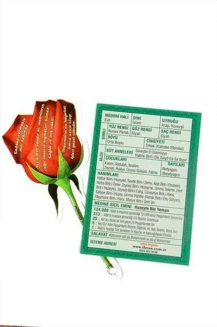 • Hz. Muhammad (s.a.v.) The identity card of our Lord, this card containing brief information that everyone can carry in his pocket, plastic uvi print, tear-proof, indelible, indelible, sided special color printing