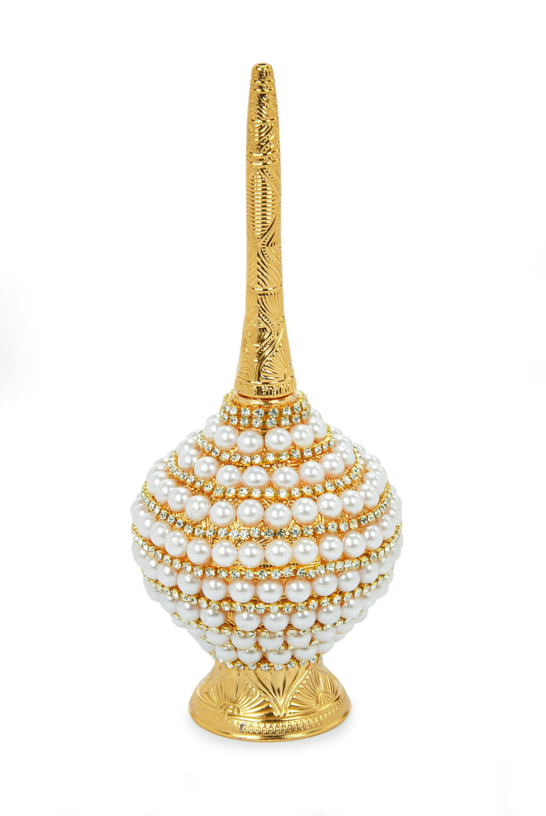 Şık ve zarif tasarımıyla dikkat çeken Gold Güldanlık (Gül Suyu Şişesi), özel günlerde gül suyu ikramı için kullanılan estetik ve geleneksel bir üründür. Altın tonlu zarif görünümü ile hem dekoratif hem de kullanışlı bir tasarım sunar.
