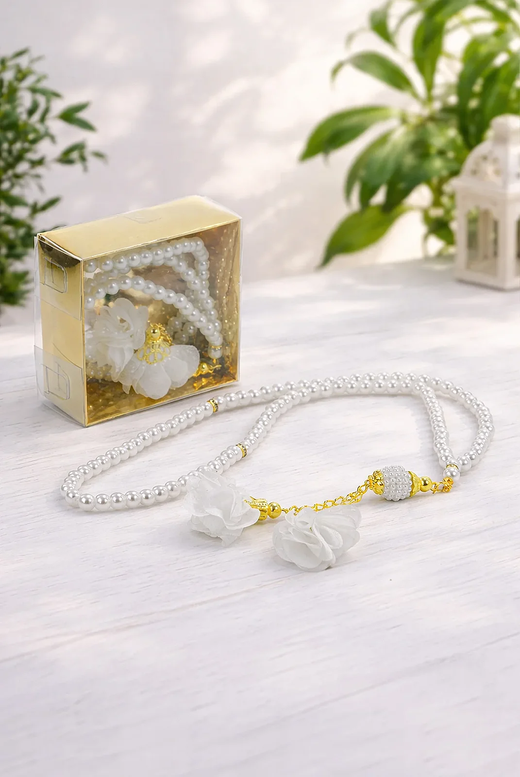 Gelince Haber VerGül detaylı, inci görünümlü kutulu tesbih modeli nikah, söz, nişan,hac,umre ve mevlid hediyelikleri dağıtımı için şık bir seçenektir. Ihvan Online’dan satın alabilirsiniz.