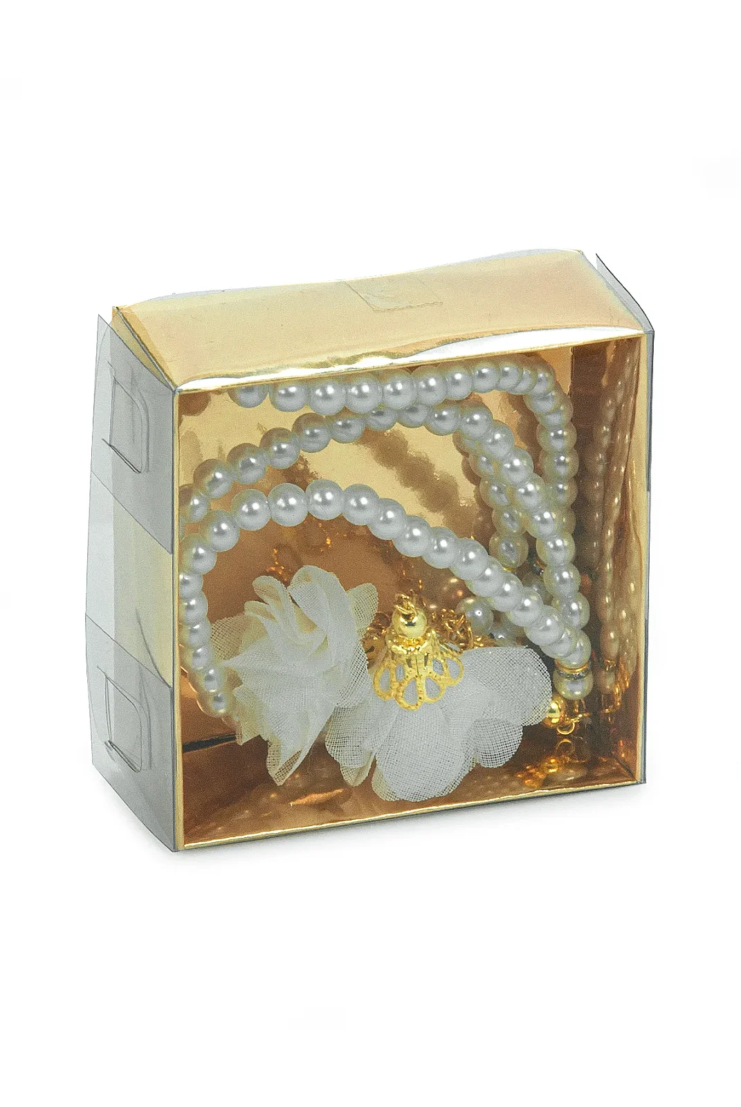 Zarif detaylarıyla dikkat çeken Kutulu Güllü İnci Görünümlü Tesbih Hediyelik, özel günleriniz için şık ve anlamlı bir sunum oluşturur. İnci görünümlü boncuklar, gül detayları ve gold tonlu kutu tasarımı bir araya gelerek estetik bir görünüm sunar.