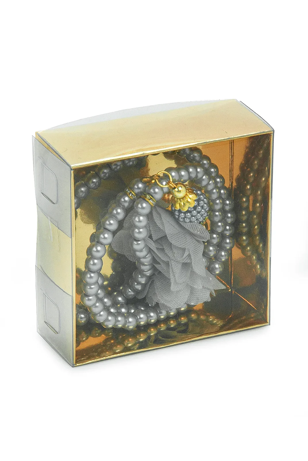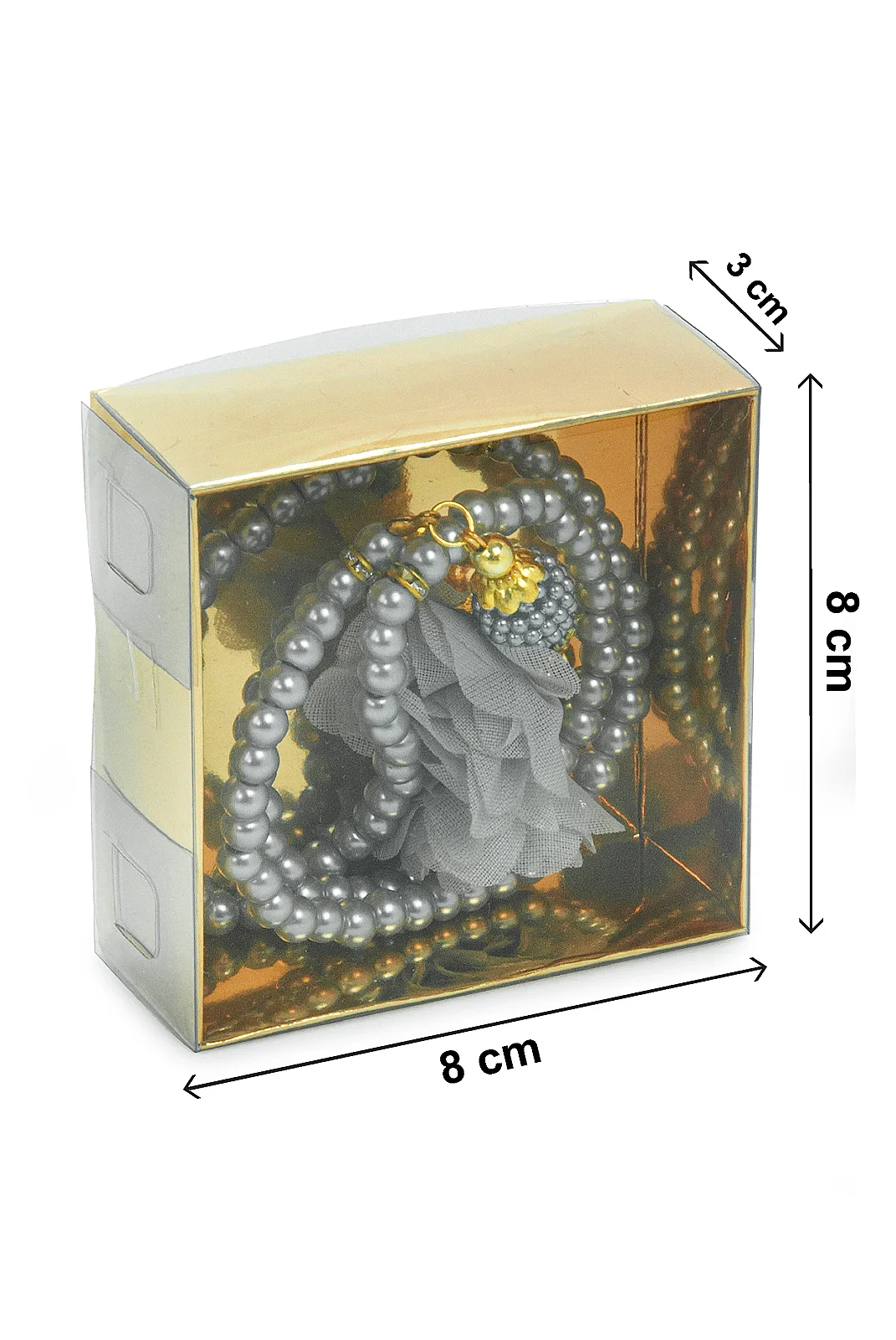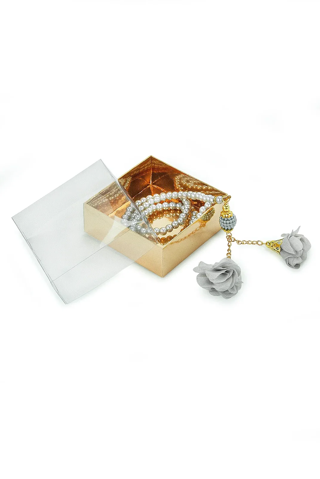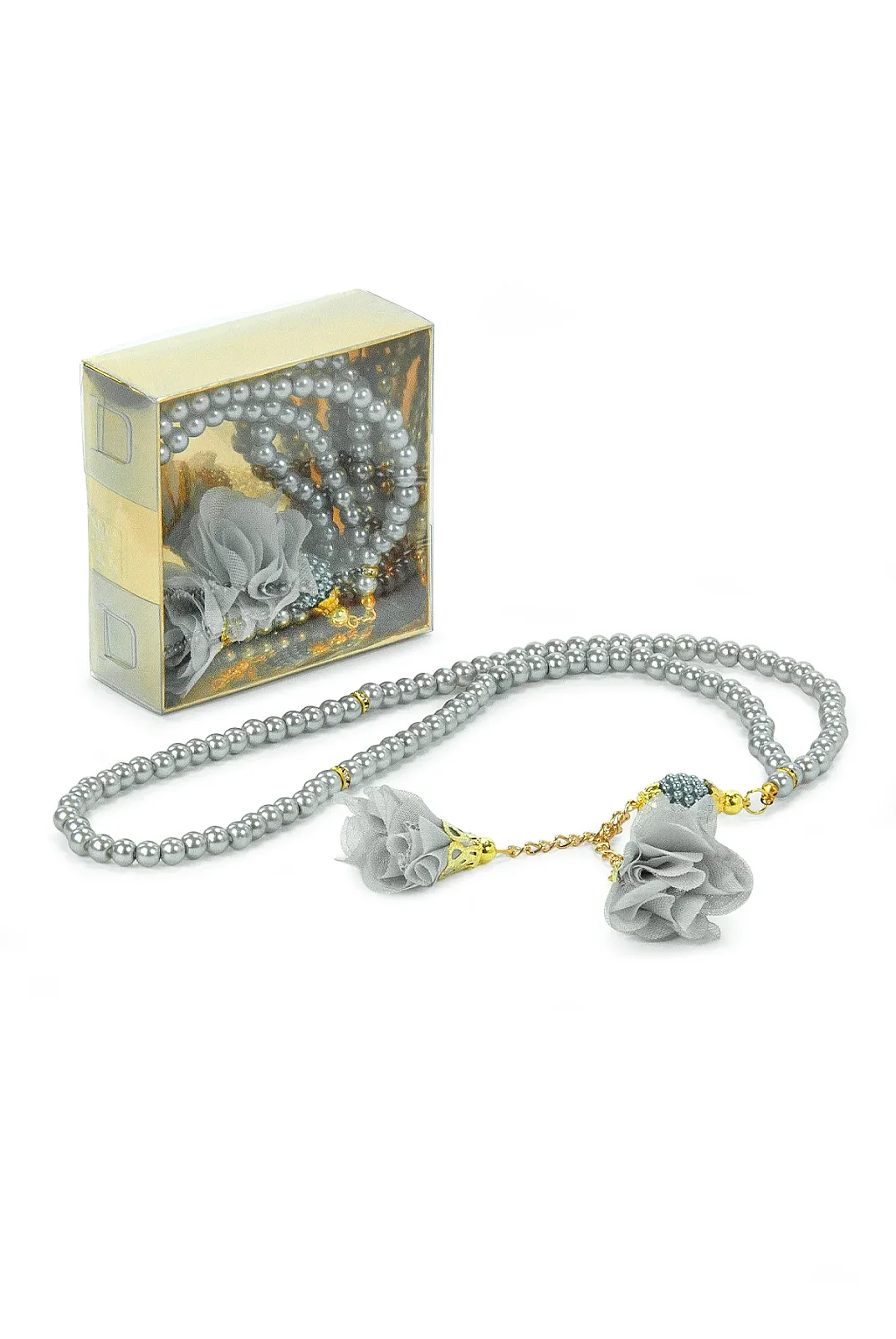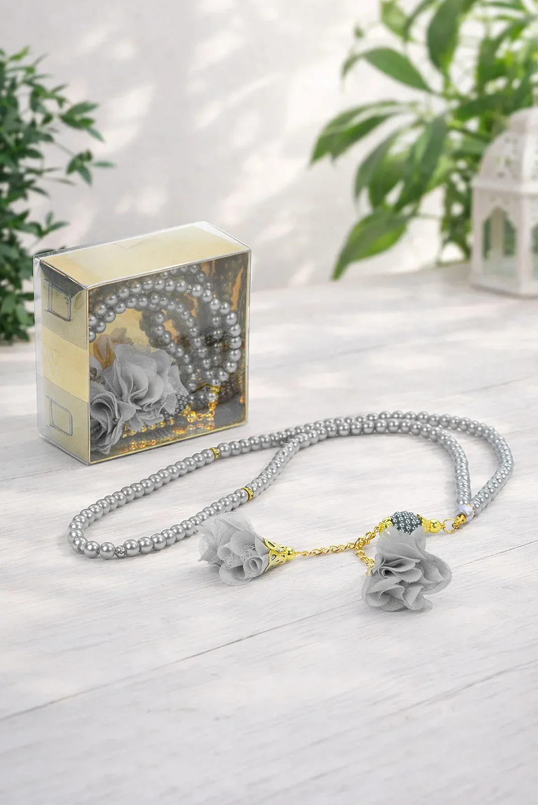 Güllü İnci Görünümlü Tesbih - Kutulu - Hac, Umre , Mevlüd Hediyeliği - Gri
