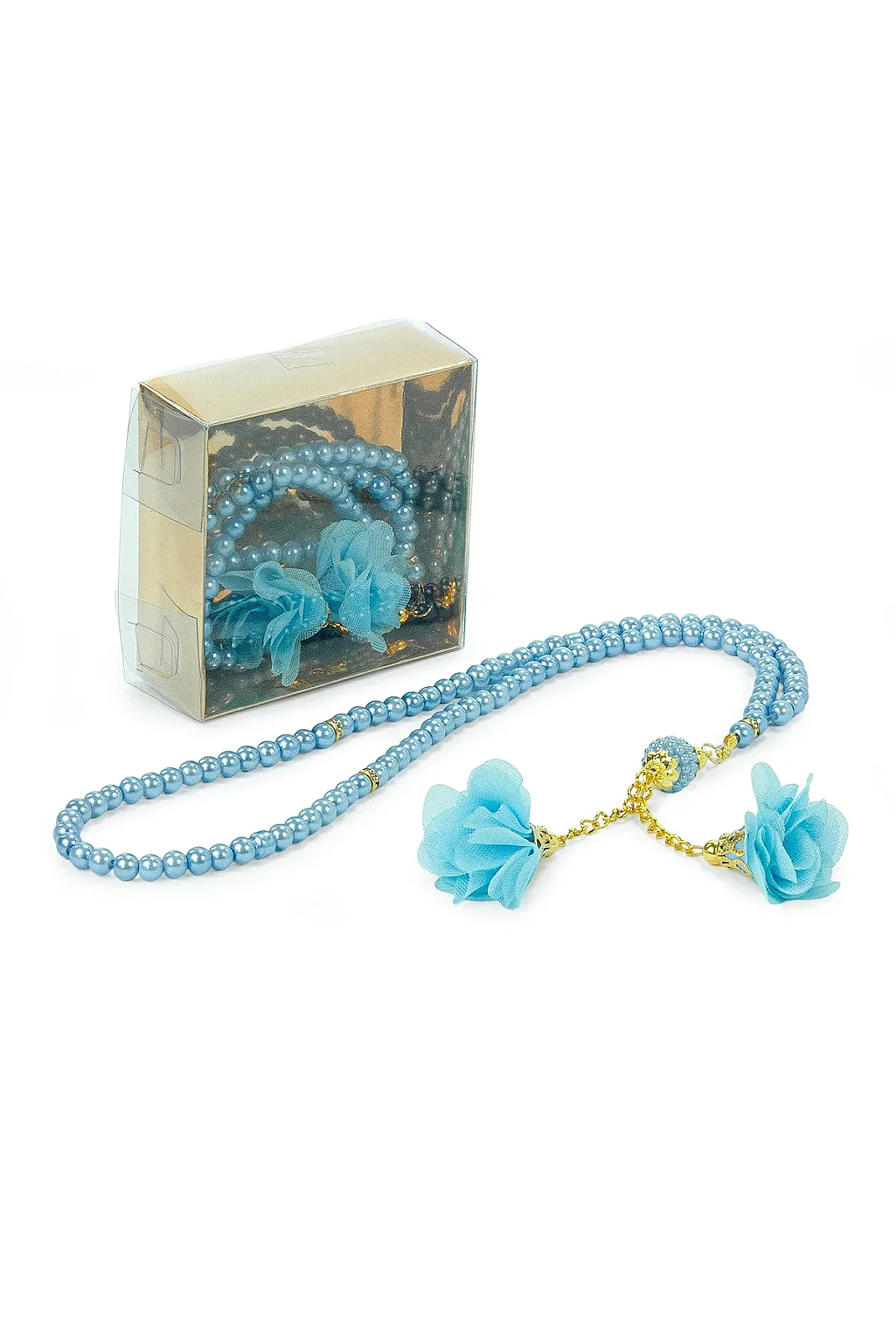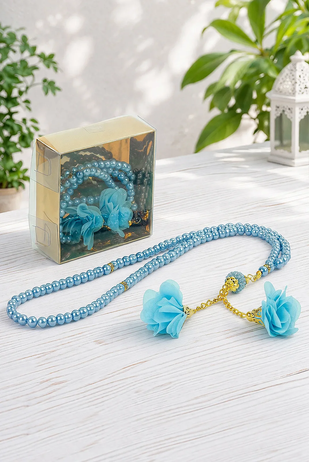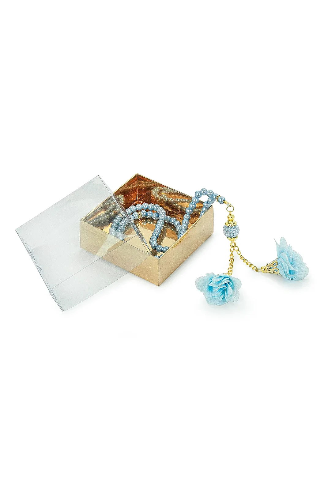 Güllü İnci Görünümlü Tesbih - Kutulu - Hac, Umre , Mevlüd Hediyeliği - Mavi
