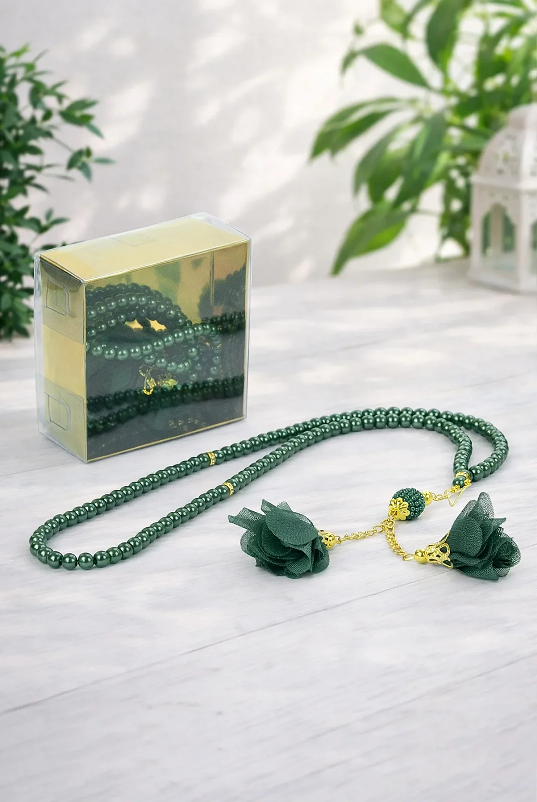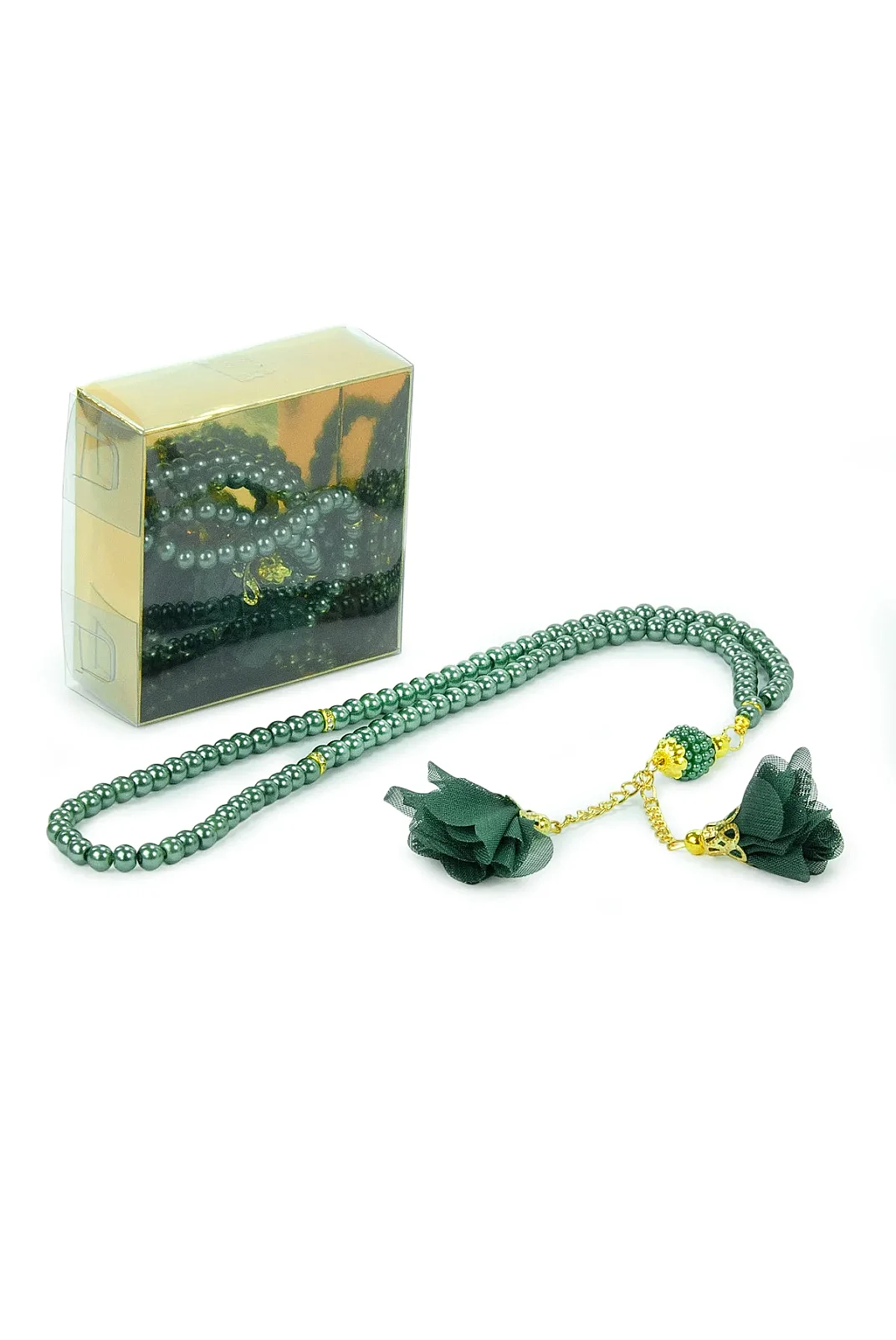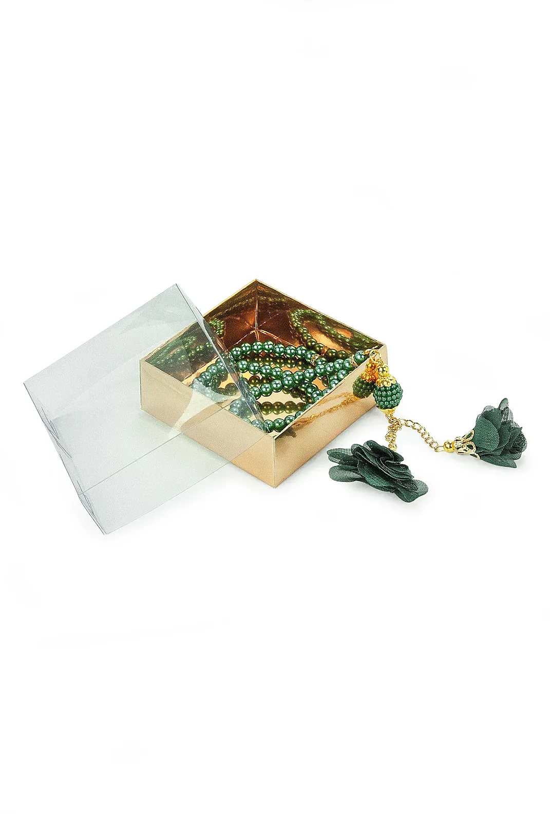 Güllü İnci Görünümlü Tesbih - Kutulu - Hac, Umre , Mevlüd Hediyeliği - Yeşil