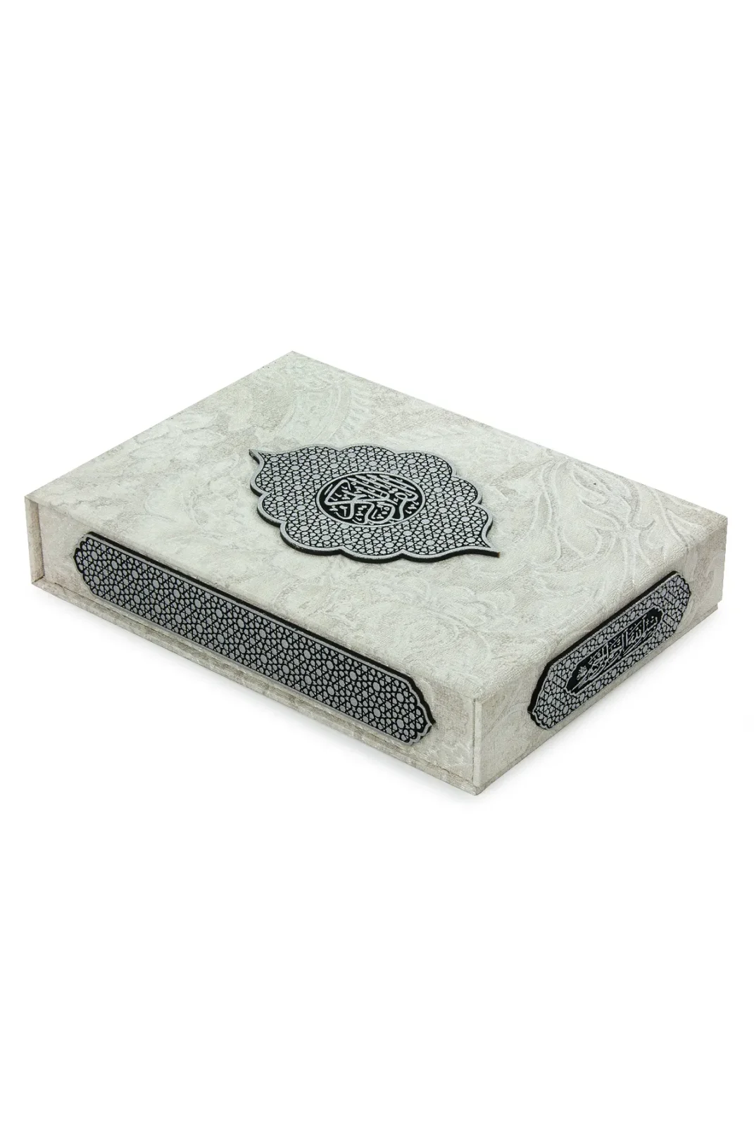 Ön yüzeyinde yer alan antik taşlama plaket detayı, kutuya estetik bir derinlik katar. Kutu iç yapısı; Kuran-ı Kerim ve tesbihin düzenli şekilde muhafaza edilmesine olanak tanır. Kullanışlı ölçüleri sayesinde Kuran-ı Kerim dik ya da yatay olarak yerleştirilebilir, tesbih ise özel alanında güvenle saklanır.