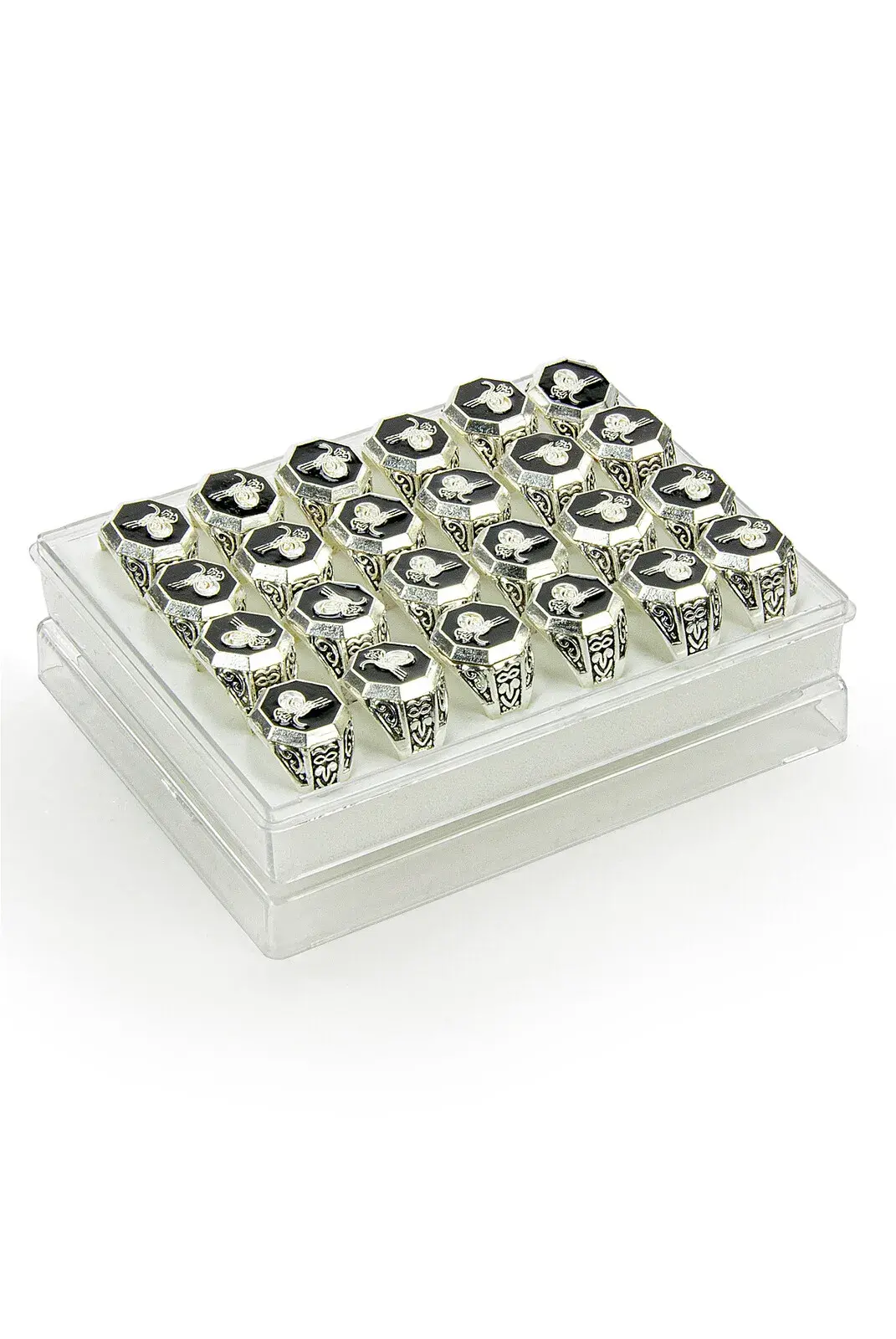Hac Umre Hediyelik 24 Adet Osmanlı Tuğralı Gümüş Renk Oval Erkek Yüzük
